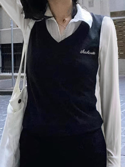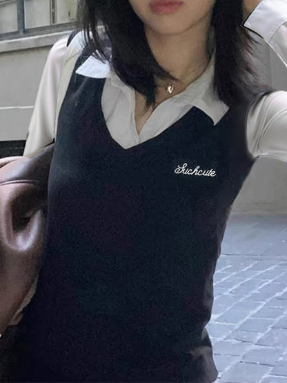 90er Jahre Kontrastfarbe Fake Zweiteiler Slim Fit Langarm Shirt