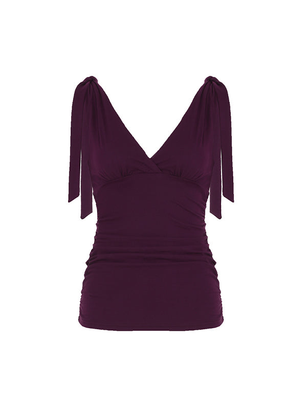 Verleihen Sie Ihrem Outfit einen Hauch von Vintage-Charme mit diesem einfarbigen Purple-Überkreuz-Tanktop im dezenten V-Ausschnitt – perfekt zum Schichten oder zum alleinigen Tragen.