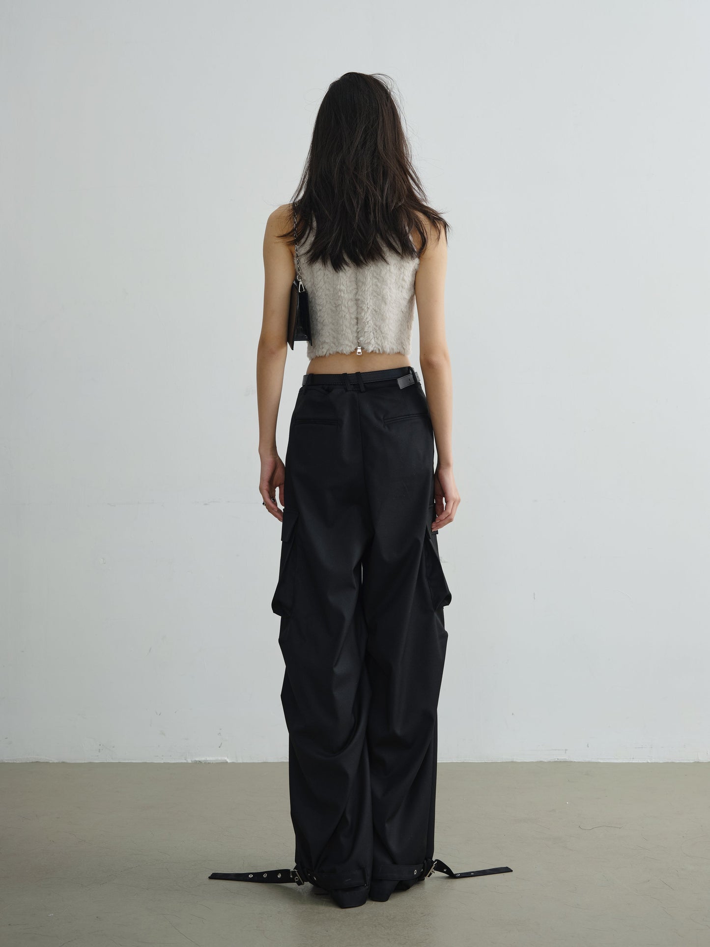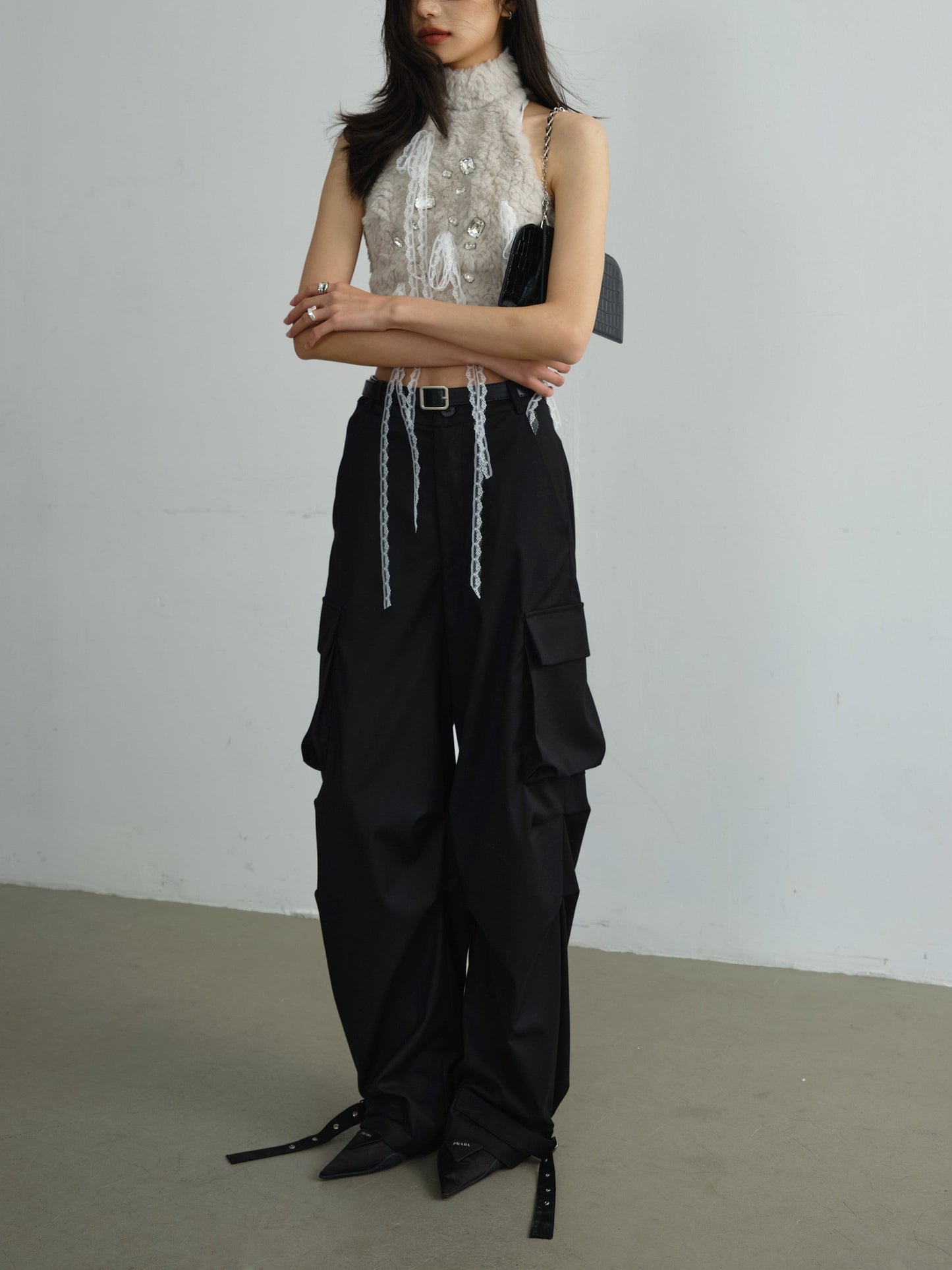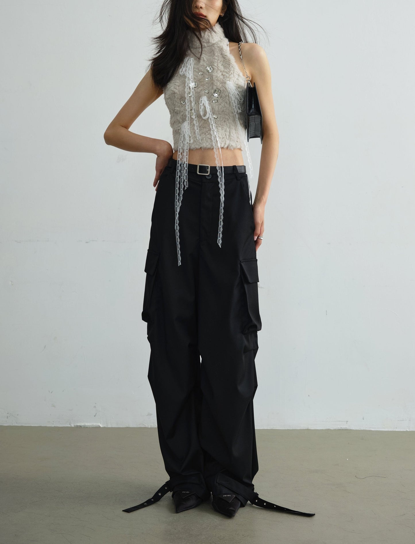 Beige Pelz Spitze Quaste ärmelloses Crop Top