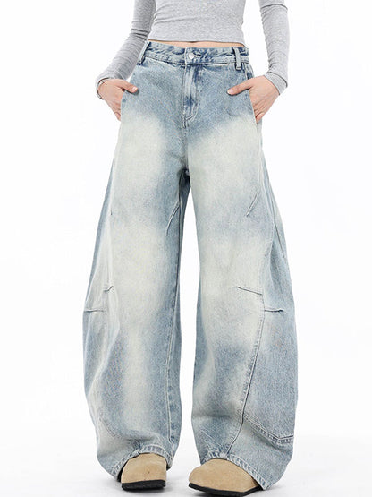 Blaue Vintage Amerikanische Curved Knife Boyfriend Jeans