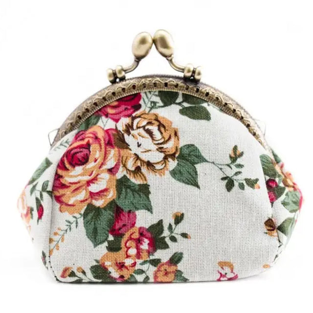 Entdecken Sie unsere einzigartige und stilvolle Vintage- Geldbörsenbeutel mit einem atemberaubenden Blumendruck-Design, das einen nostalgischen Charme verströmt. Hergestellt aus hochwertiger Segeltuchstruktur und weichem Innenfutter aus Baumwolle und Polyester, ist dieser Beutel langlebig und bietet einen außergewöhnlichen Tragekomfort.
