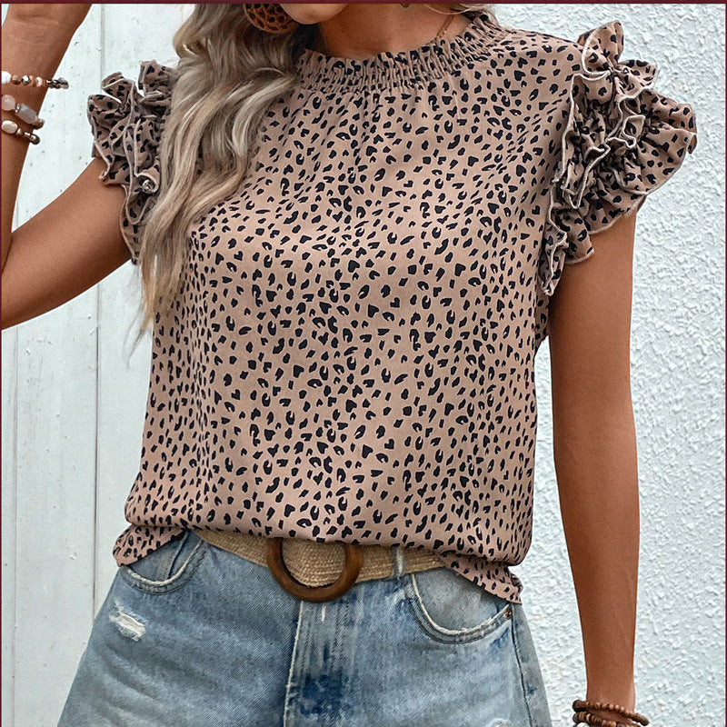 Diese trendige Bluse mit Leopardenmuster und verspielten Rüschenärmeln verleiht jedem Outfit einen modischen Akzent. Der geraffte Rundhalsausschnitt und die lockere Passform sorgen für hohen Tragekomfort und eine feminine Silhouette. Perfekt für lässige und schicke Looks, lässt sich diese Bluse vielseitig kombinieren.