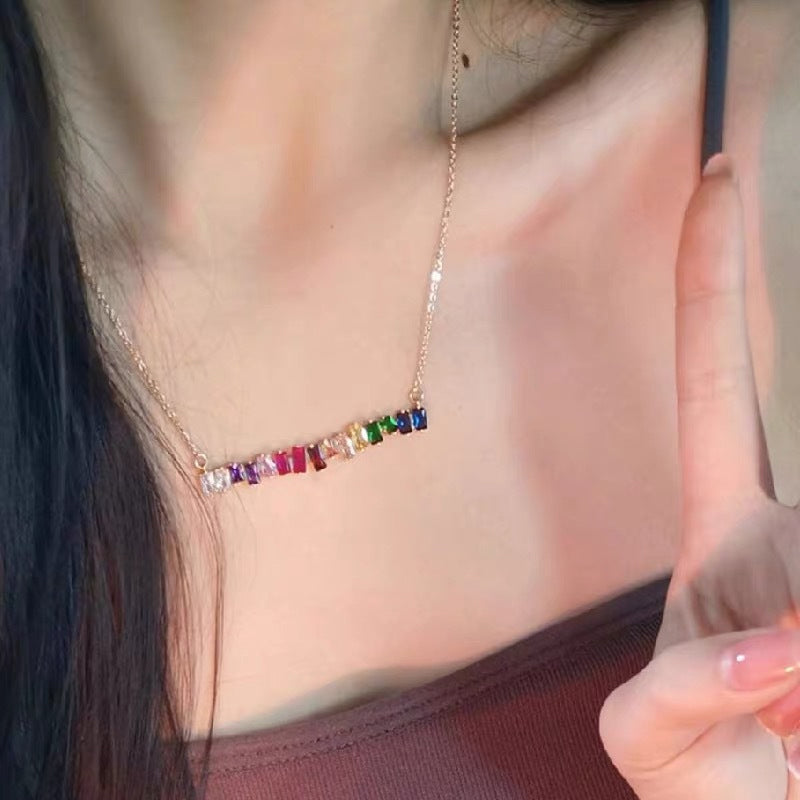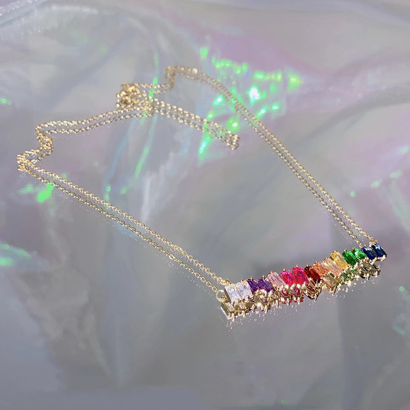 Erleben Sie die Schönheit des Regenbogens mit unserer atemberaubenden Halskette mit funkelnden Strasssteinen! Hergestellt aus einer hochwertigen Legierung und Strass, bietet diese Halskette eine außergewöhnliche Qualität und Langlebigkeit.