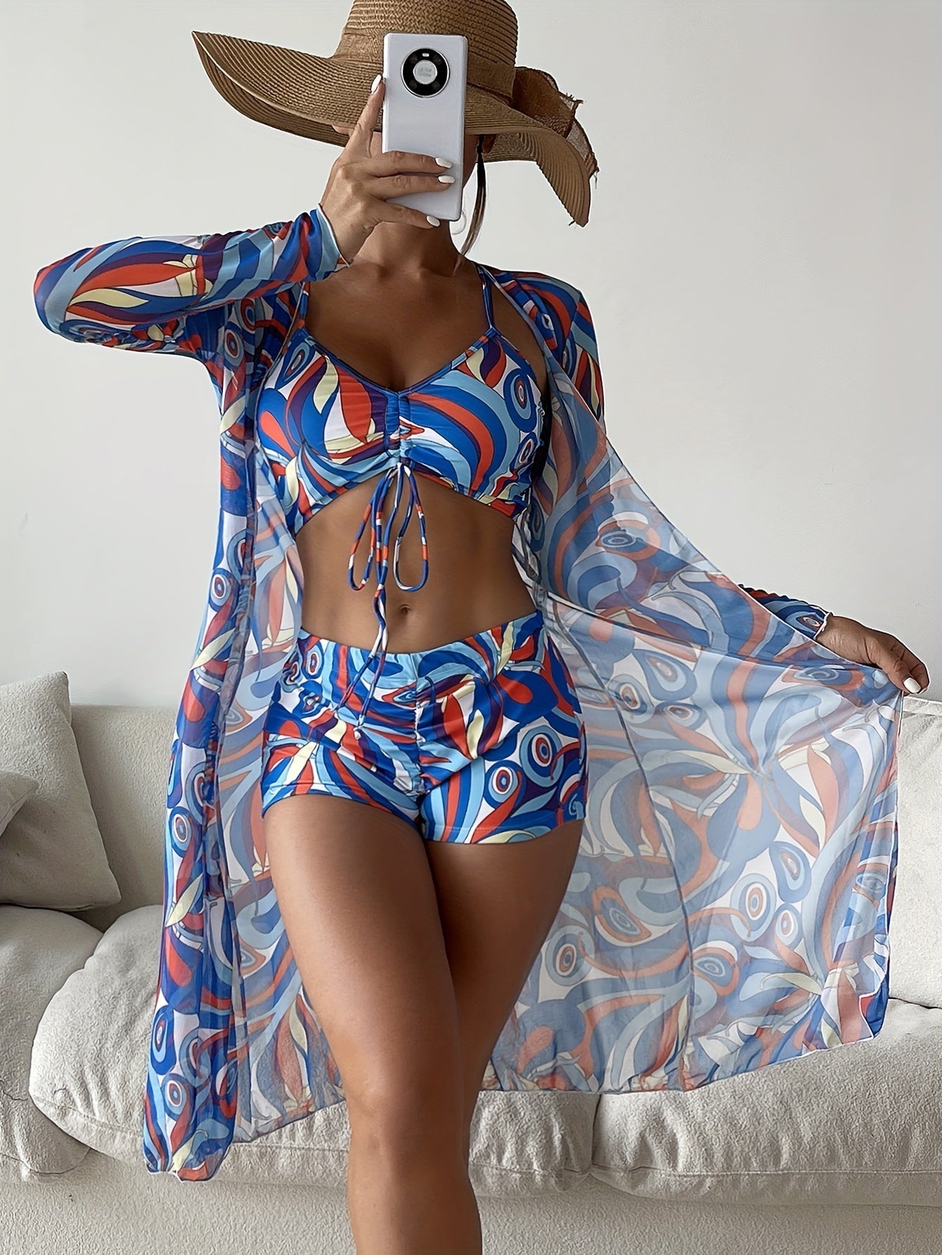 Verspieltes Design mit lebendigen Mustern: Der weiche und dennoch strapazierfähige Stoff sorgt für ein angenehmes Tragegefühl, selbst an langen Tagen am Strand. Die bunten Muster und die lebhaften Farben bieten eine auffällige und fröhliche Optik, während die verstellbaren Träger und die Raffung für eine schmeichelhafte Passform sorgen. Dieses Badeanzug-Set ist ideal, um einen modernen und dennoch entspannten Look zu kreieren, der Ihre Persönlichkeit und Ihren individuellen Stil unterstreicht.