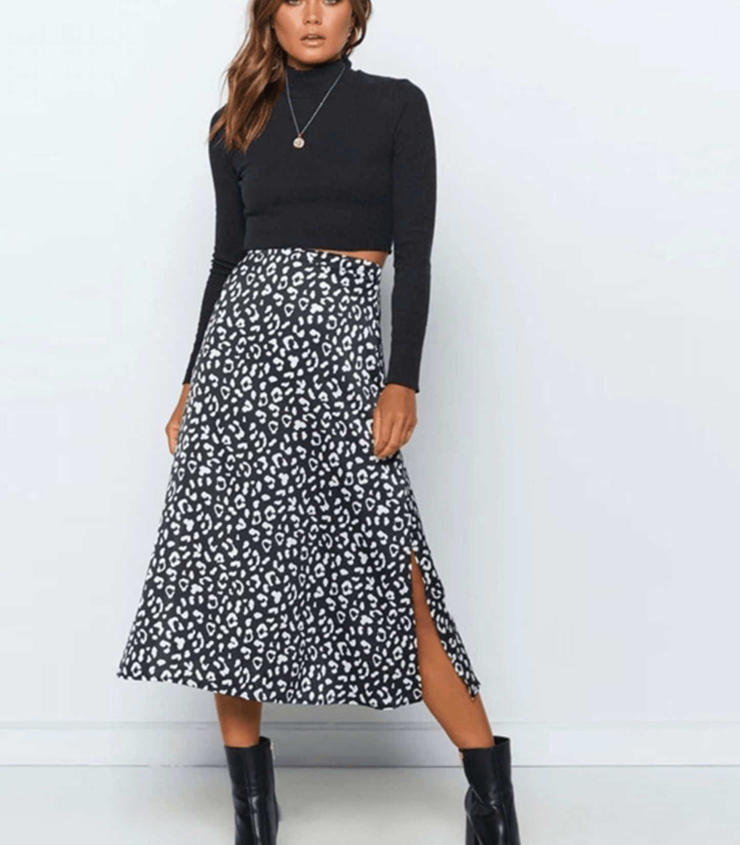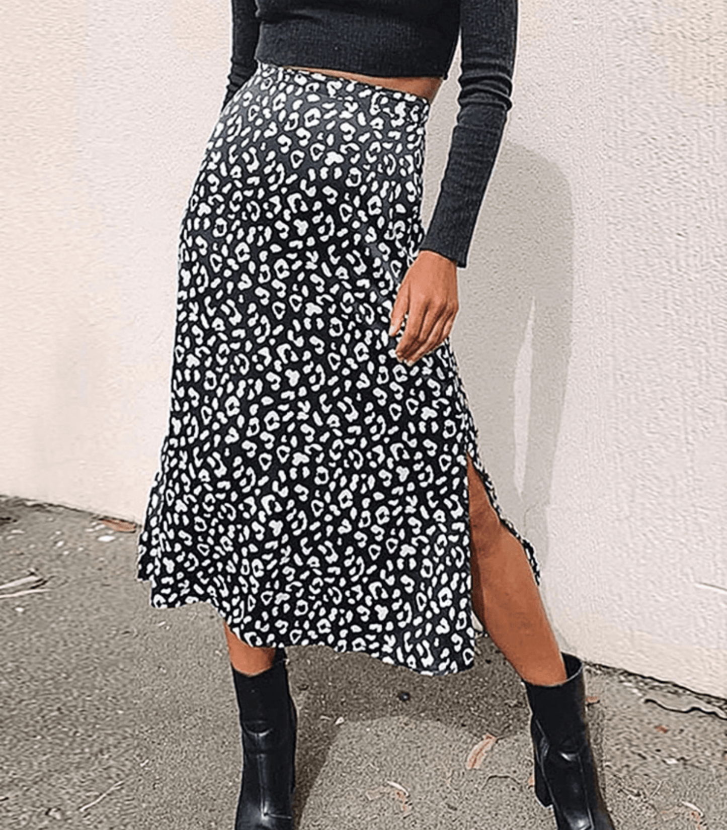 Chiffonrock mit Leopardenmuster, geteilter Rock