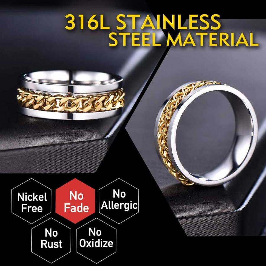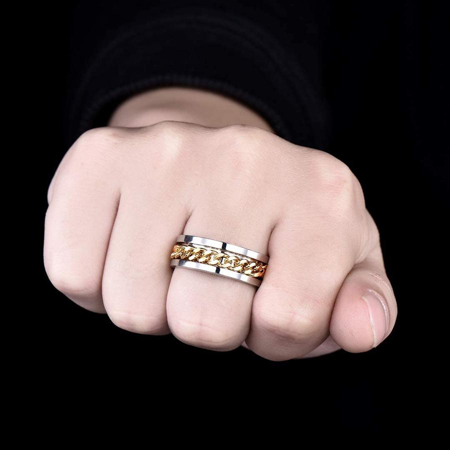 Dieser Ring verfügt über ein inneres Band, das im Hauptkettenband verriegelt ist und manuell gedreht werden kann. Es ist ein sehr lustiger und interessanter Ring, modisches Design für den Alltag und eignet sich perfekt als Werkzeug zum Stressabbau.