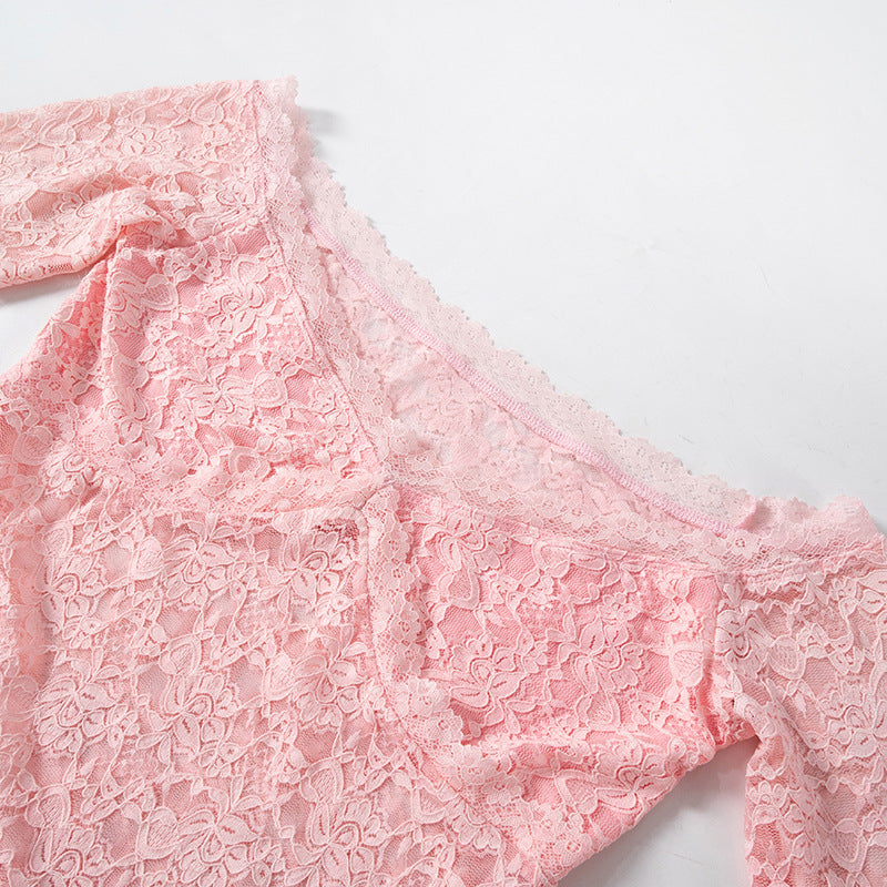 Strahle pure Sinnlichkeit aus mit diesem verführerischen Spitzenkleid im Off-Shoulder-Design. Das weiche, zarte Material liegt angenehm auf der Haut und betont deine Figur auf eine elegante Weise. Perfekt für besondere Abende und romantische Anlässe, verleiht dir dieses Kleid ein unwiderstehliches Selbstbewusstsein und einen atemberaubenden Look.