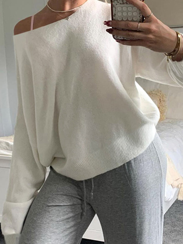 Einfarbige Y2k Pullover mit Einer Schulter und übergroßer Passform