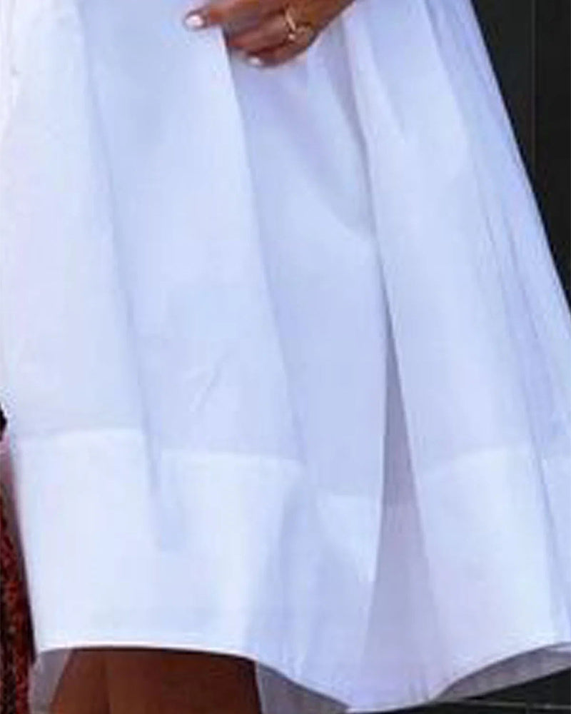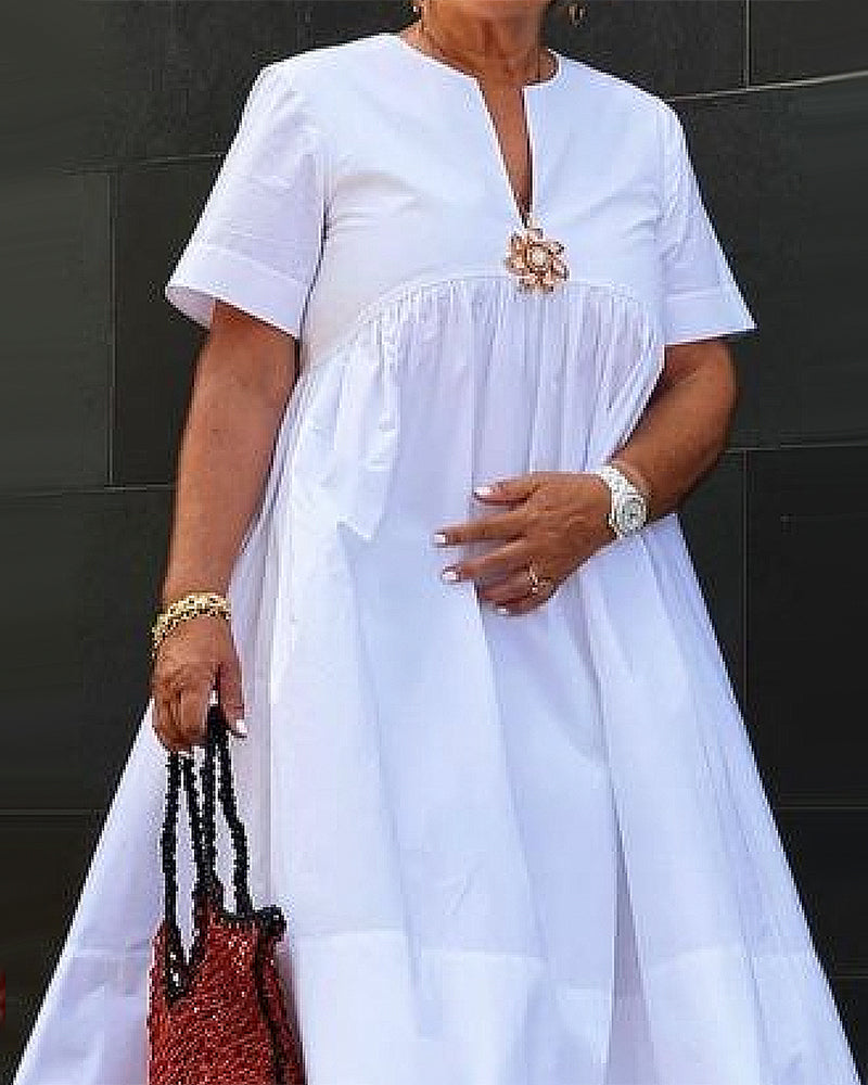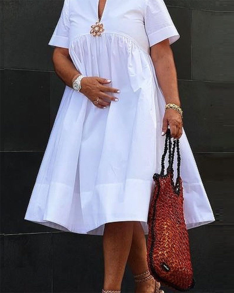 Einfarbiges, kurzärmeliges, plissiertes Patchwork-Kleid