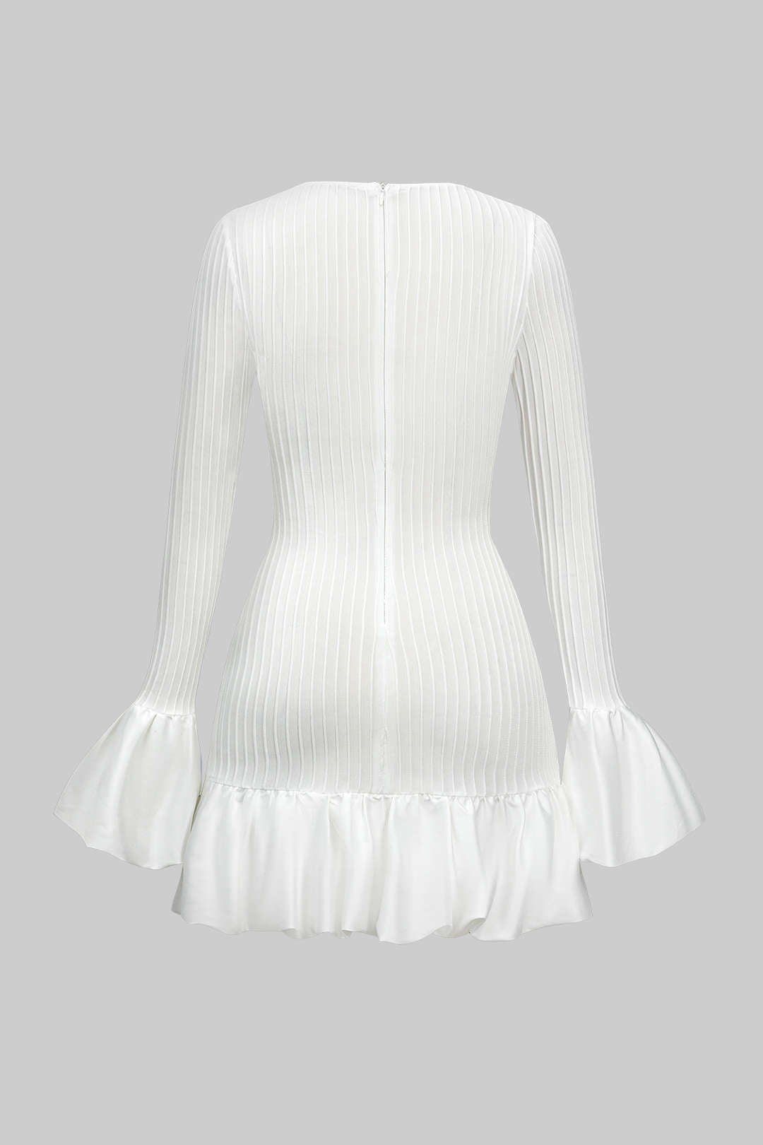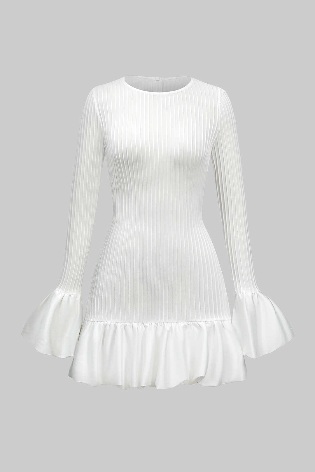 Einfarbiges Mini Dress mit Puffärmeln und Glockenärmeln