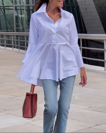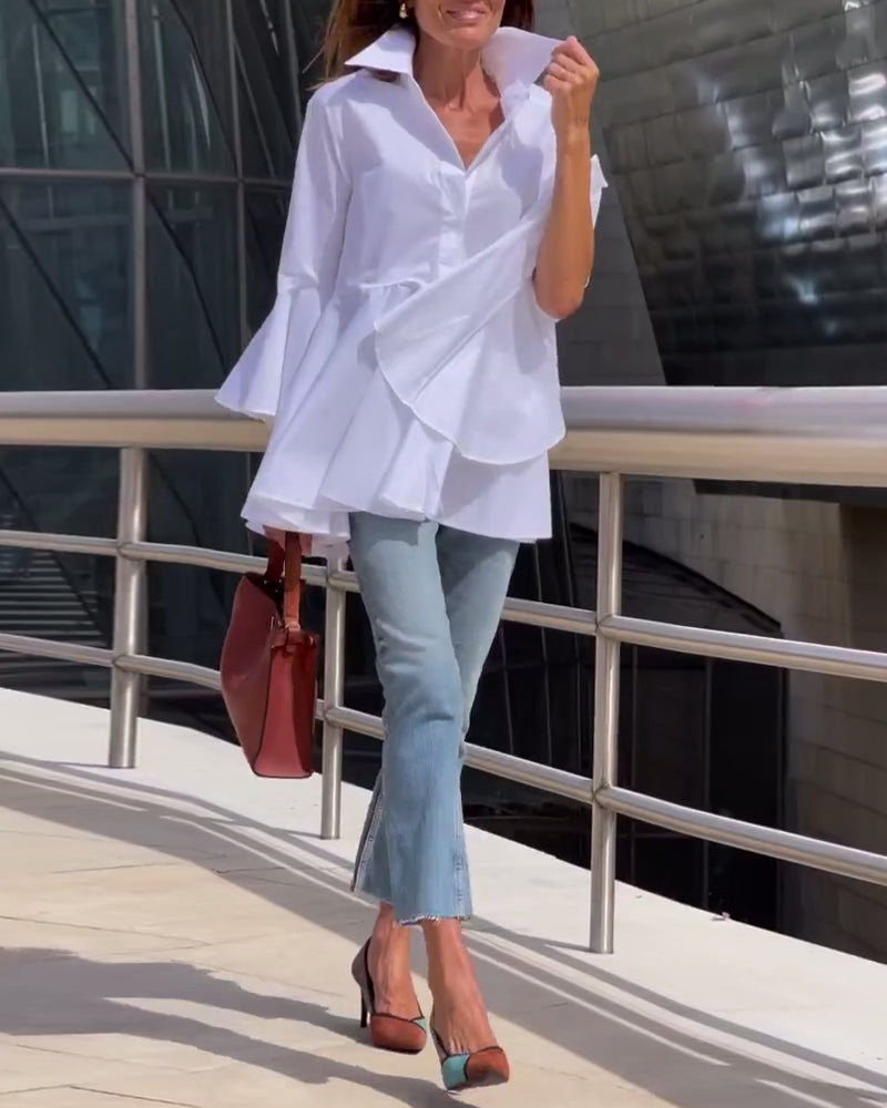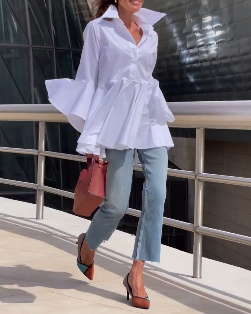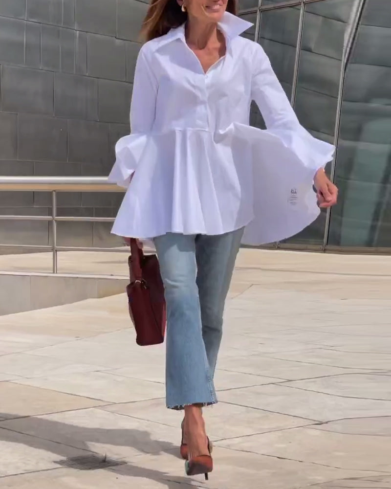 Einfarbiges Oberteil mit Revers und Glockenärmeln