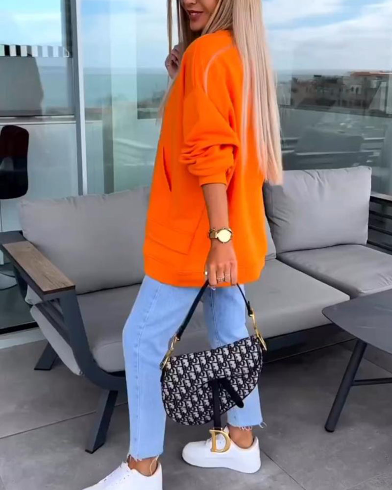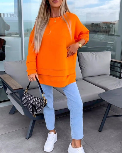 Einfarbiges pullover-sweatshirt mit rundhalsausschnitt