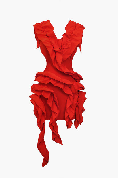Flatternde & feminine Silhouette: Entworfen, um deine Kurven zu betonen, bietet dieses Kleid eine figurbetonte Passform mit einem verspielten und dennoch eleganten Flair. Das Rückenfreie Detail verleiht einen Hauch von Verführung, während die plissierten Rüschen Bewegung und Textur für einen Blickfang-Look erzeugen.