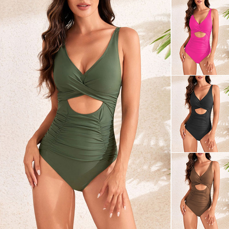 Schlankmachende Badeanzüge für Damen mit sexy V-Ausschnitt und Cut-Out-Design auf Vorder- und Rückseite verleihen diesem Badeanzug einen femininen Stil.