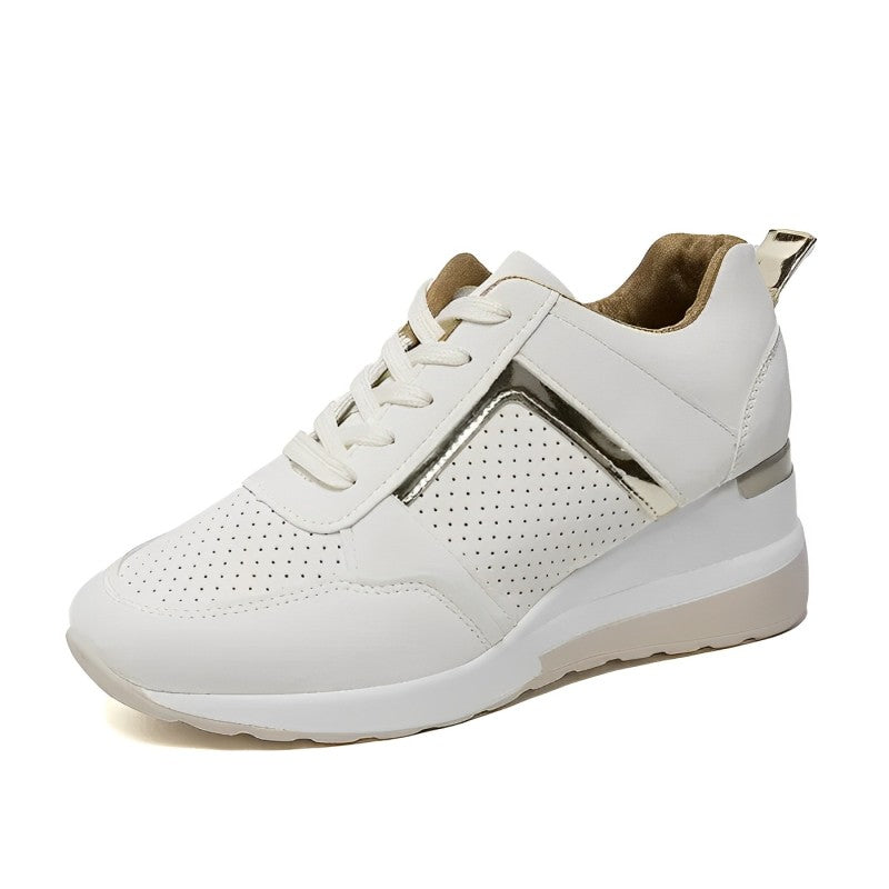 Stil trifft auf Komfort: Die Bianca Elegante Weiße Damen-Sneaker sind die perfekte Wahl für modebewusste Frauen, die Wert auf Stil und Bequemlichkeit legen. Diese Sneaker kombinieren eine schicke Ästhetik mit fortschrittlicher Schuh-Technologie, ideal für den Alltag oder besondere Anlässe.