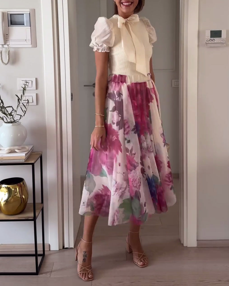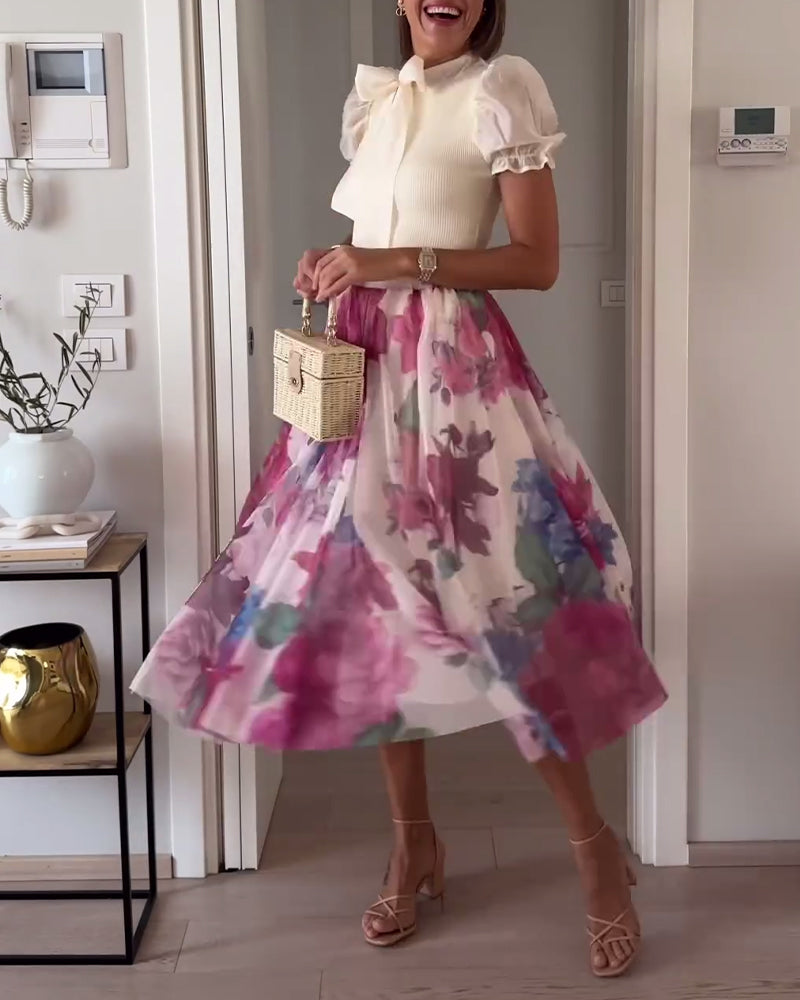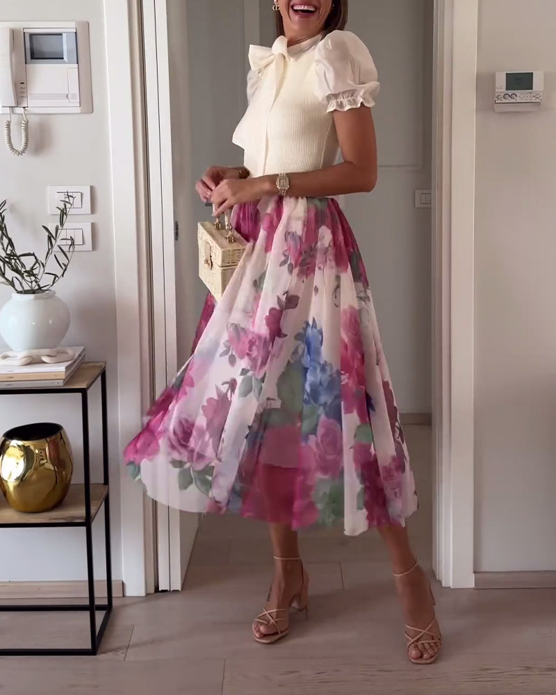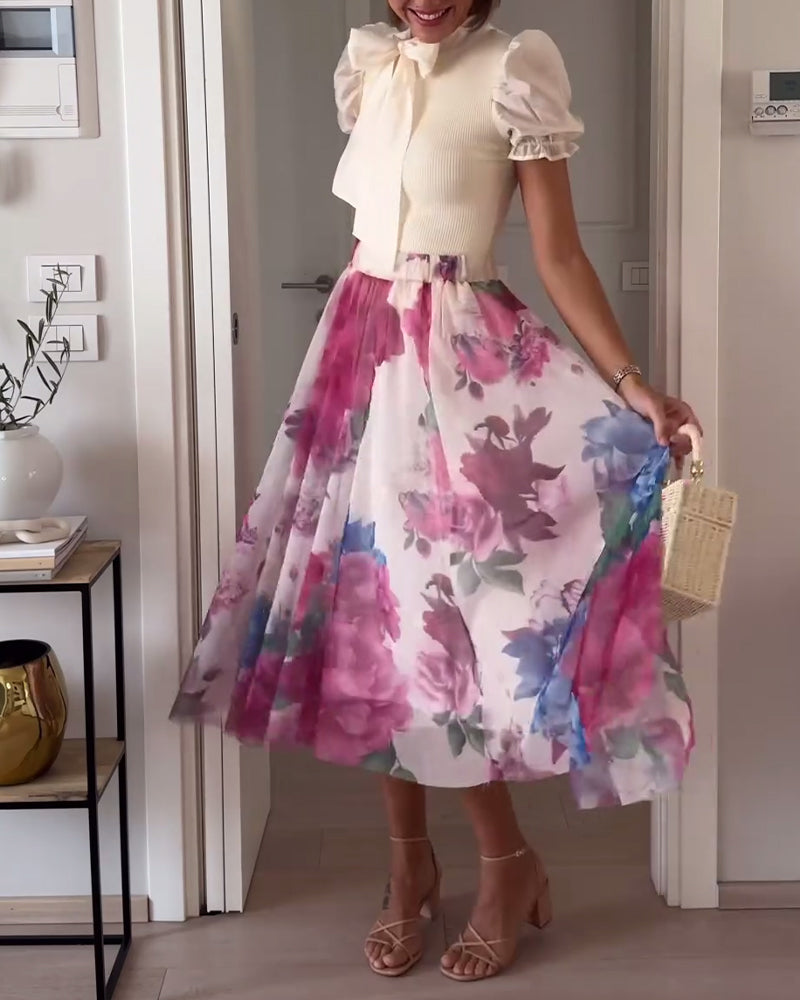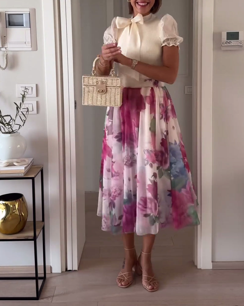 Eleganter Faltenrock mit farbenfrohem Blumendruck