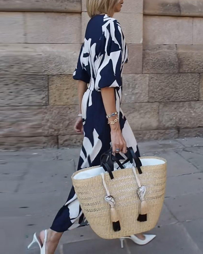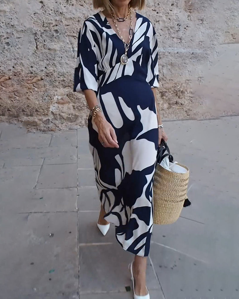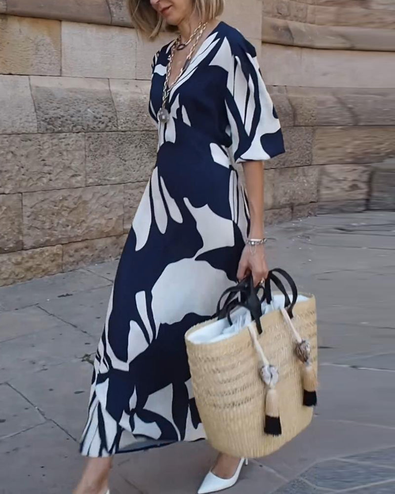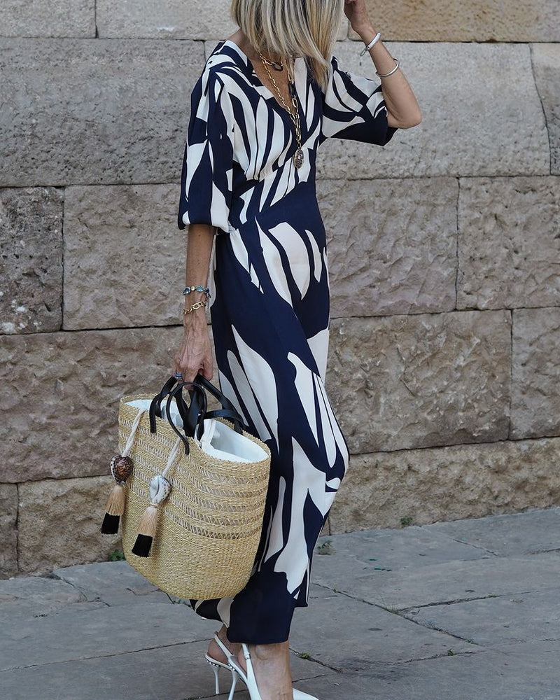 Elegantes bedrucktes kleid mit v-ausschnitt