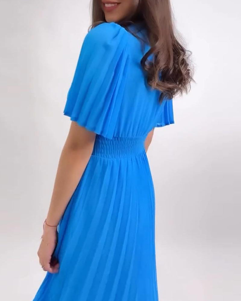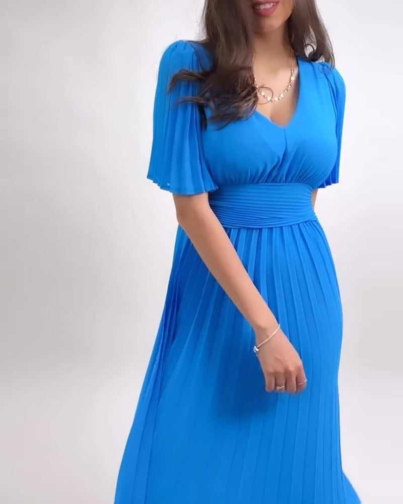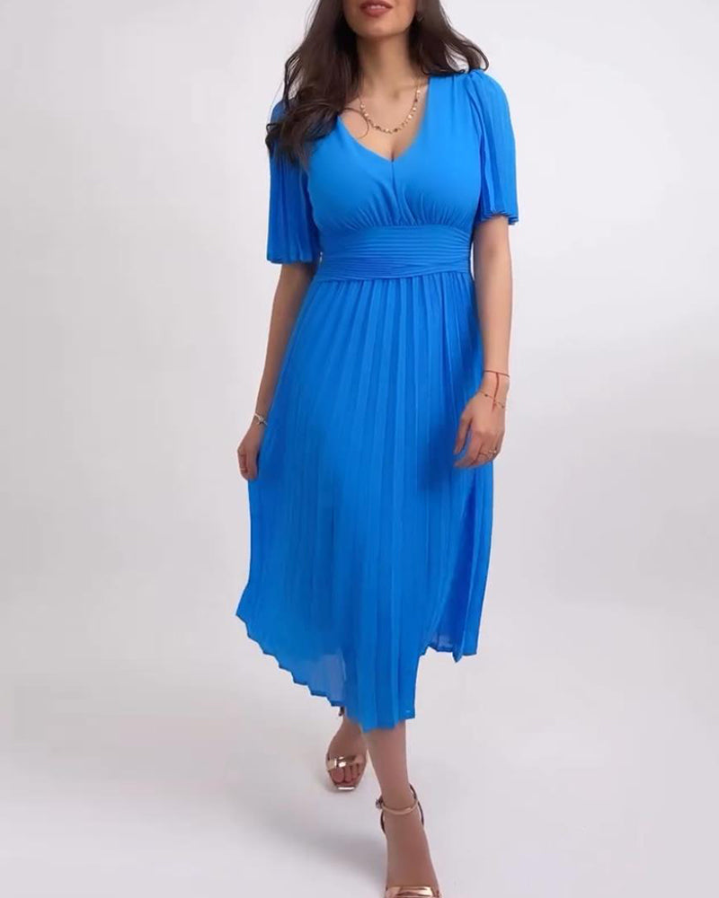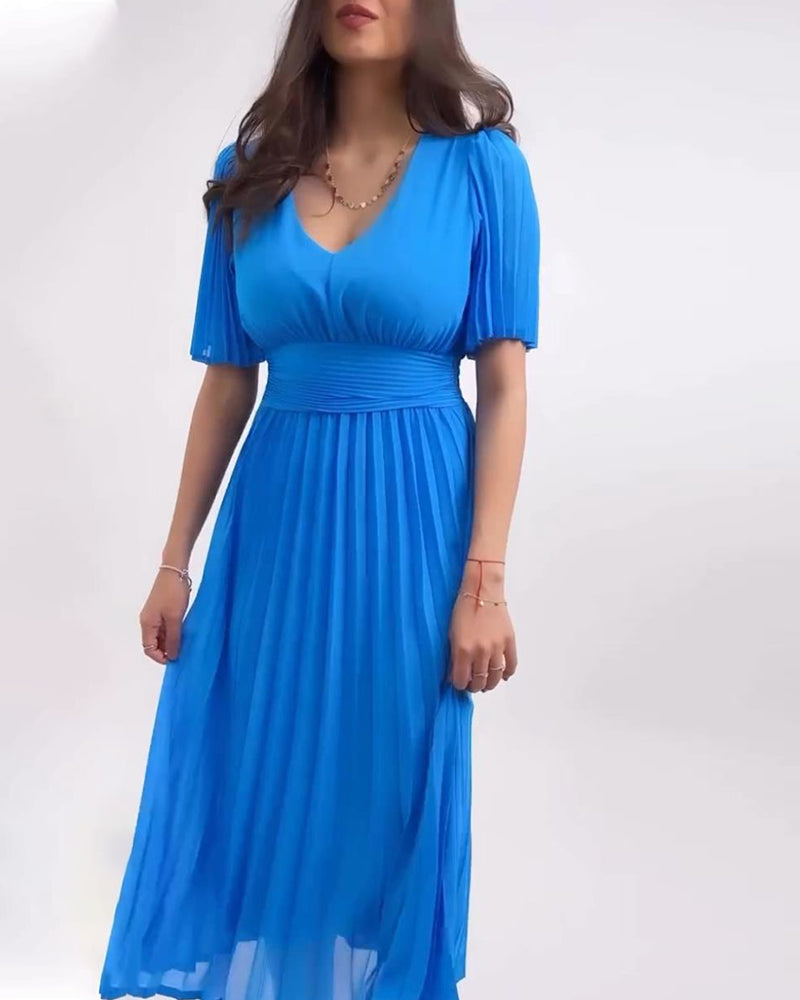 Elegantes, einfarbiges plisseekleid mit v-ausschnitt