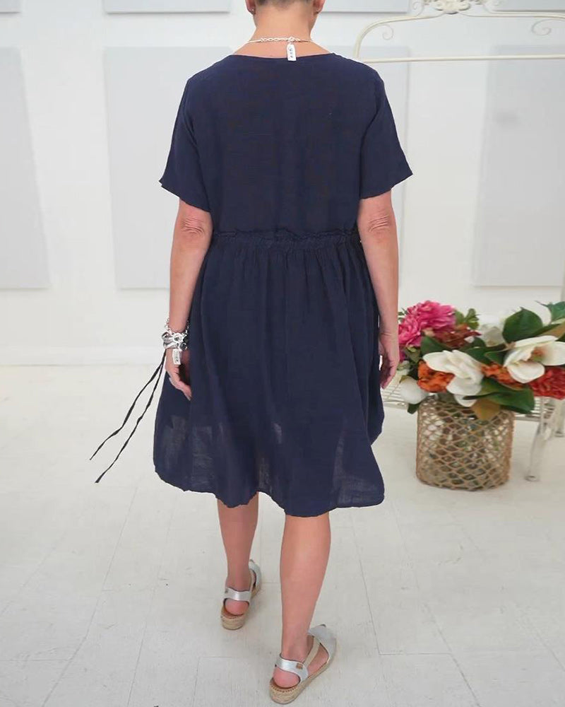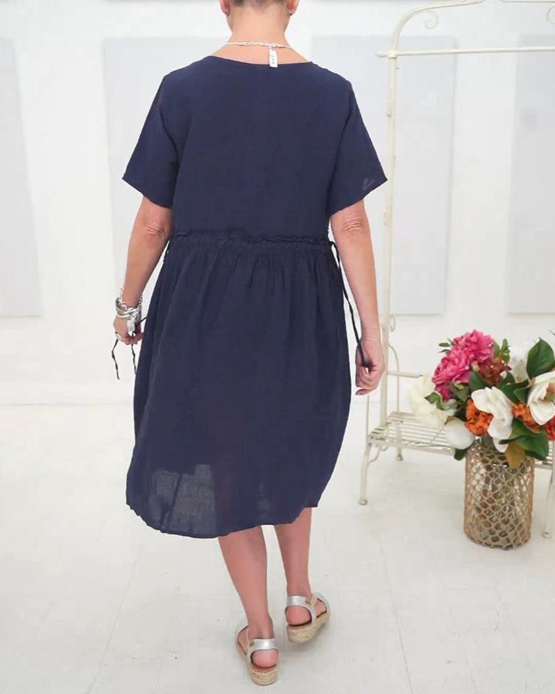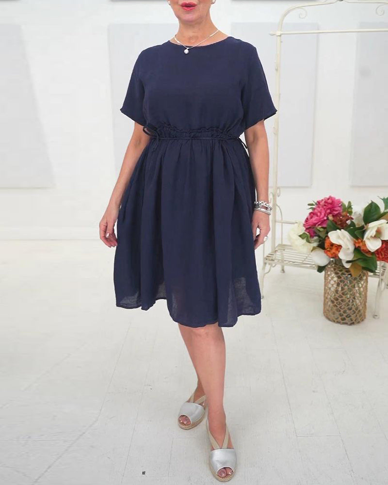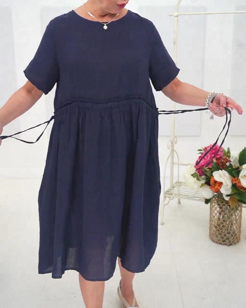 Elegantes Kleid mit einfarbigem Spleiß und Kordelzug