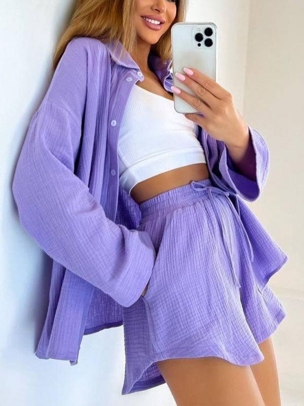 Flexibilität für Ihre Garderobe: Mit diesem vielseitigen Set sind Ihnen keine Grenzen gesetzt. Tragen Sie die Teile zusammen für einen harmonischen Look oder kombinieren Sie sie einzeln, um Ihrer Kreativität freien Lauf zu lassen. Die lebhafte Lilafarbe bringt Frische in jedes Outfit und macht Sie zum Hingucker.