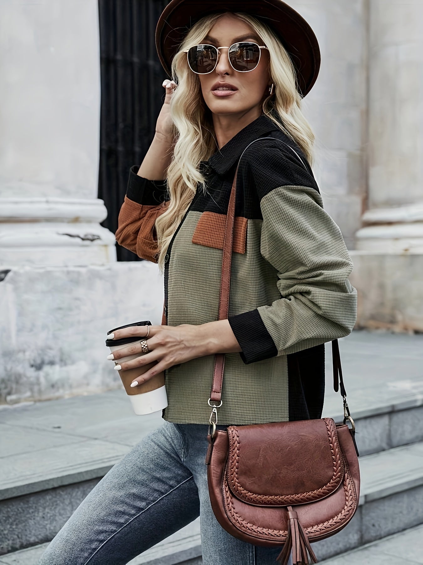 Ob für einen entspannten Stadtbummel, ein Treffen mit Freunden oder einen lässigen Tag im Büro – die Farbblock Drop Shoulder Jacke - Mia ist vielseitig einsetzbar und wertet jeden Look auf. Trage sie über deinem Lieblings-T-Shirt oder kombiniere sie mit Jeans und Stiefeln für einen stilvollen Casual-Look.