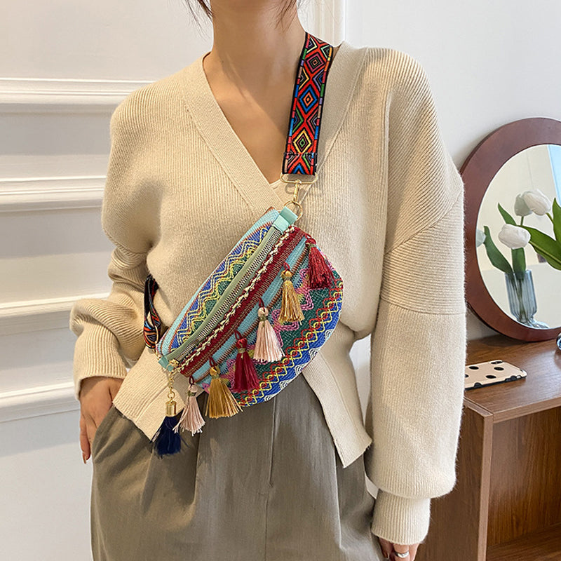 - 1 × Farbenfrohe gewebte Taillen-/Schultertasche