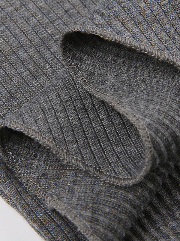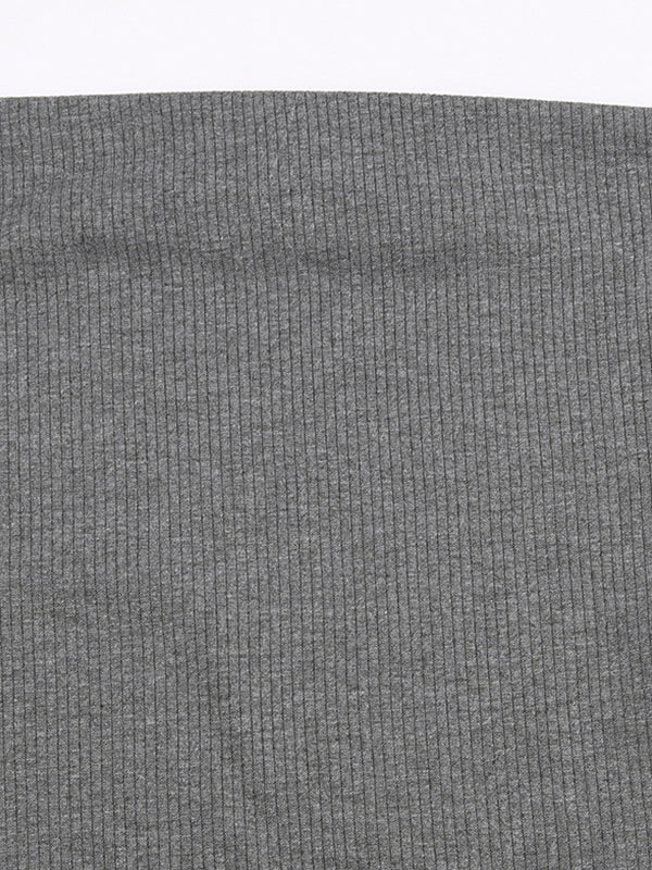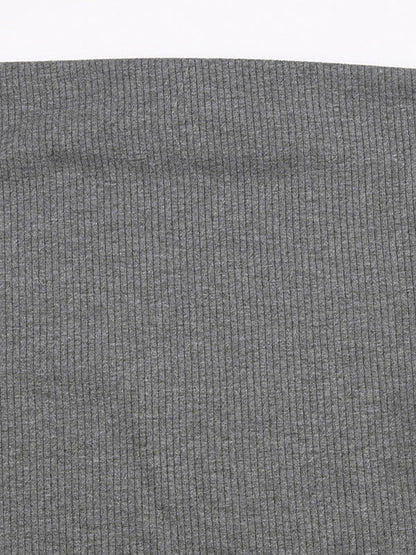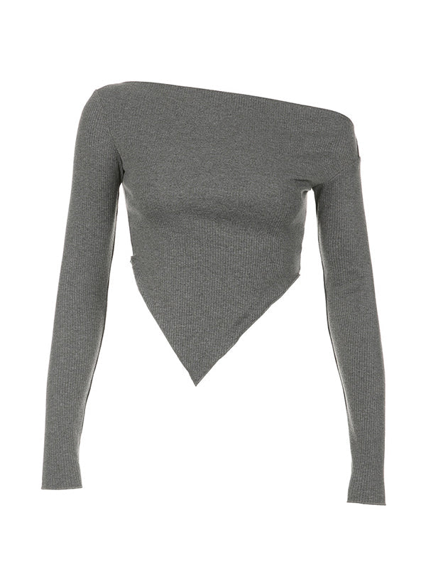 Grauer Schulterfrei Pullover mit Unregelmäßigem Schlitzsaum
