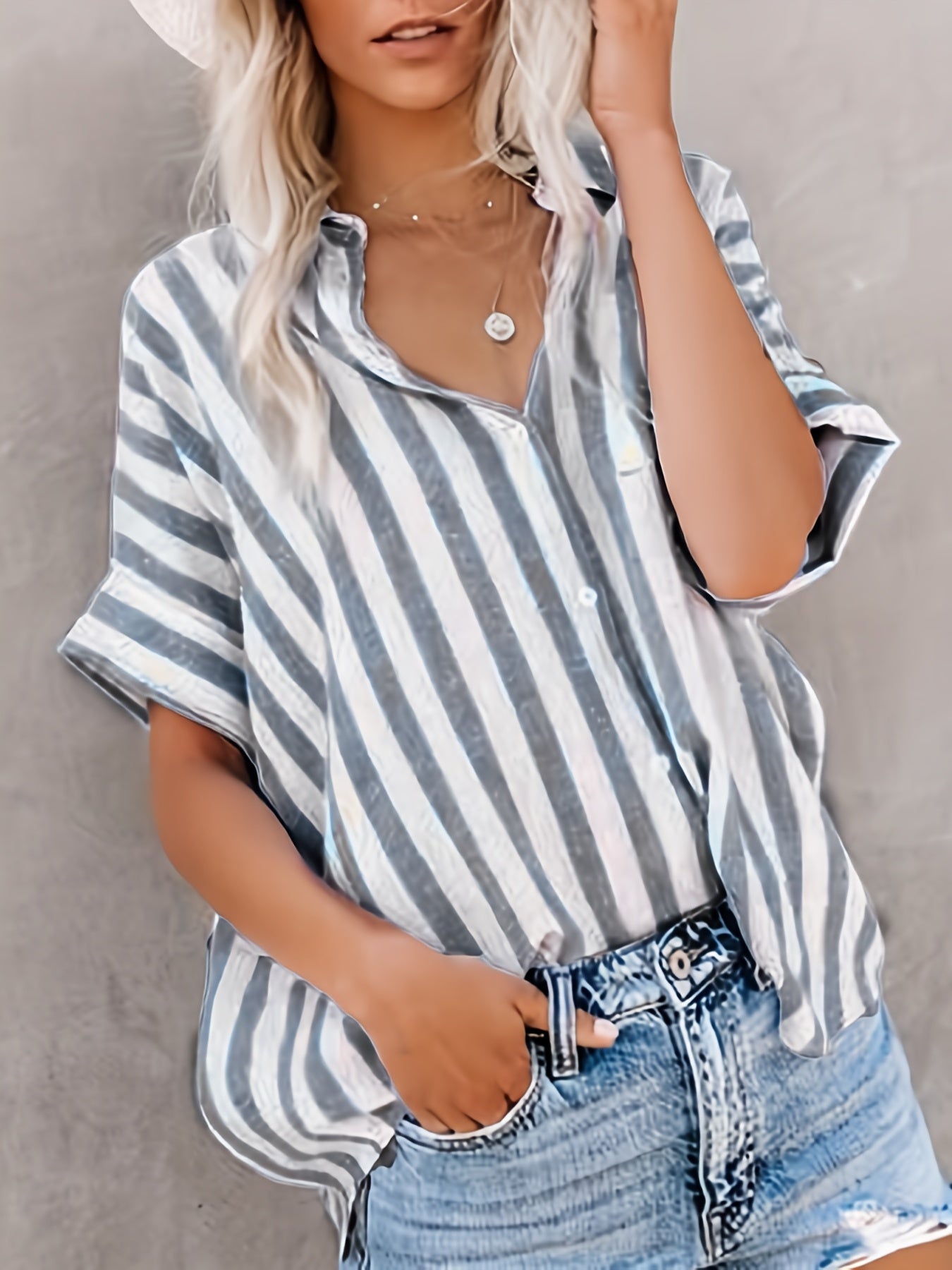 Vielseitig kombinierbar: Dieses Hemd lässt sich mühelos mit Jeans, Shorts oder eleganten Hosen kombinieren. Es ist perfekt für verschiedene Anlässe, sei es ein entspannter Tag im Büro oder ein sonniger Spaziergang im Park. Der klassische Kragen und die lässige Passform machen es zu einem vielseitigen Kleidungsstück, das in keinem Kleiderschrank fehlen sollte.