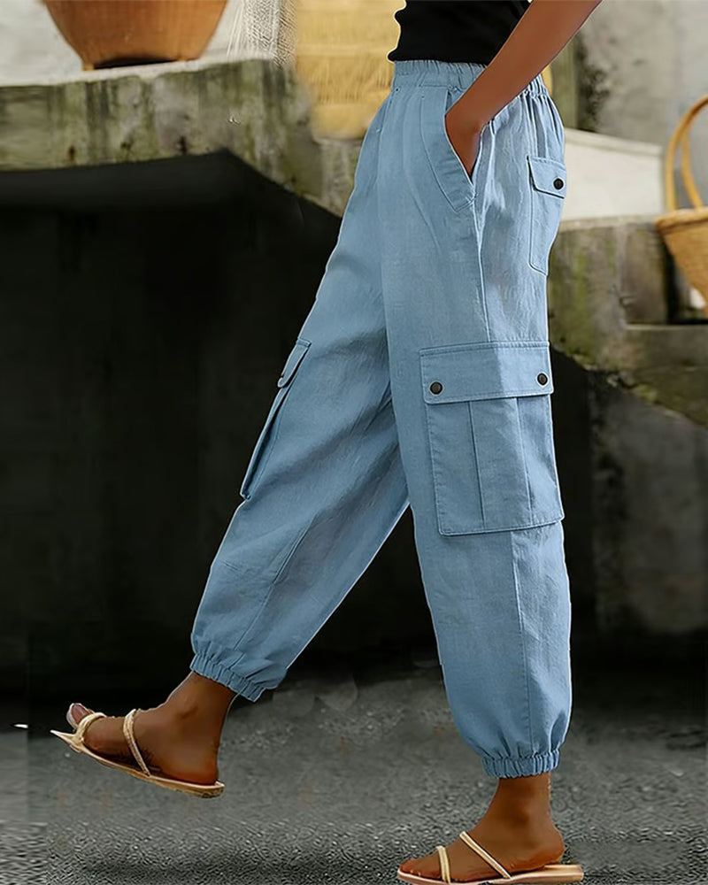 Hosen lässig Kordelzug Taschen Cargo