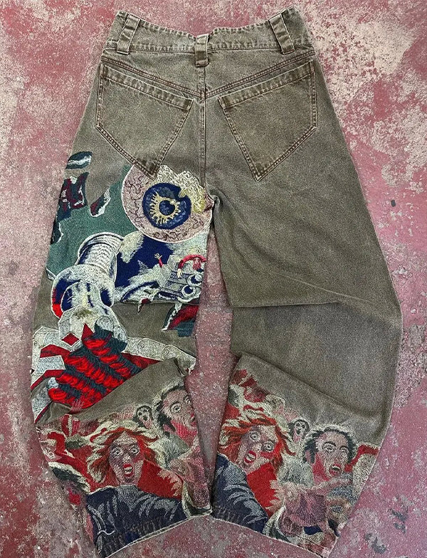 Japanische bestickte Y2K Jeans