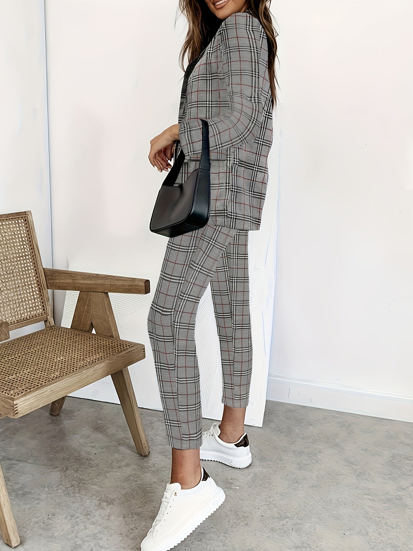 Kombinieren Sie dieses karierte Set mühelos mit verschiedenen Oberteilen und Accessoires. Die schlichte Eleganz und das vielseitige Design ermöglichen es Ihnen, es nach Belieben zu stylen und Ihren individuellen Look zu unterstreichen. Mit seiner modernen Silhouette wird dieses Set schnell zu Ihrem Lieblingsstück für viele Gelegenheiten.