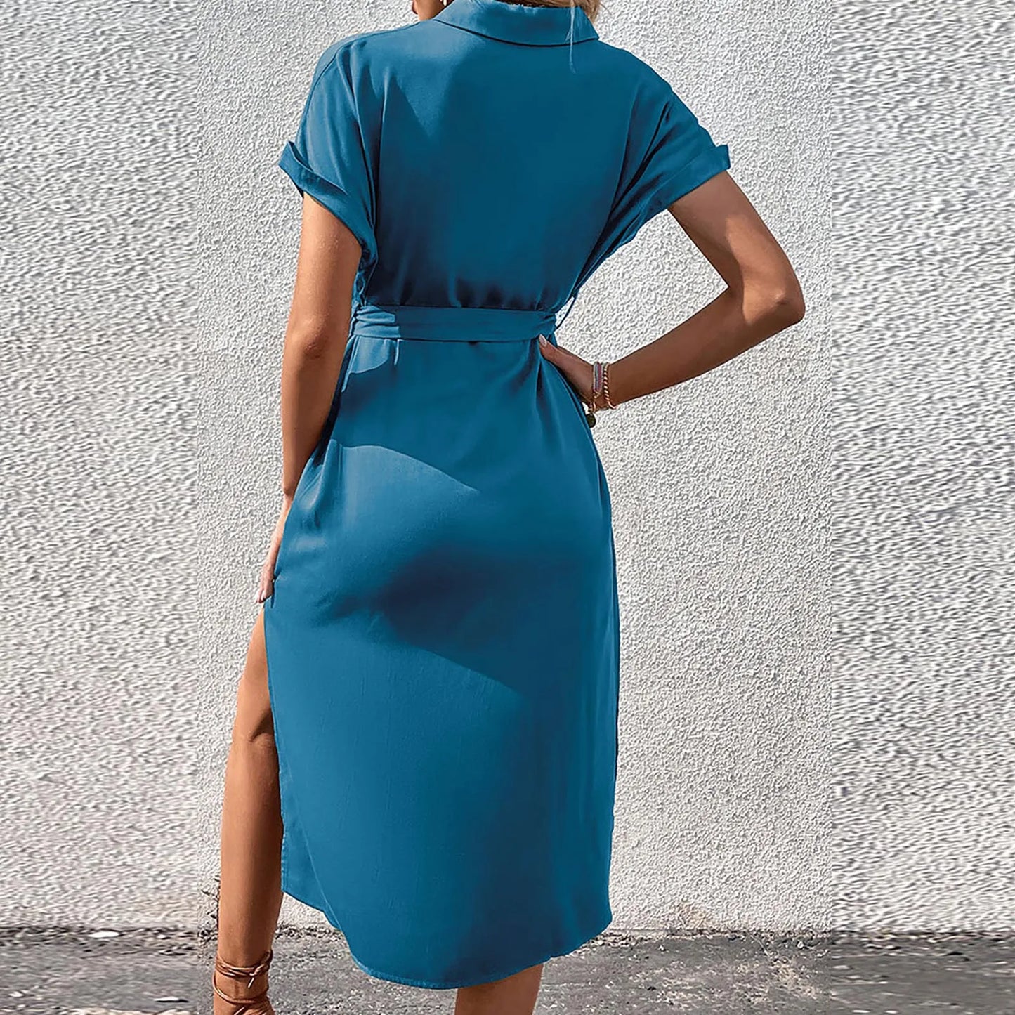 Dieses lässige Hemdkleid mit Knopfleiste und Gürtel bietet eine perfekte Kombination aus Komfort und Stil. Der Gürtel betont deine Taille und sorgt für eine feminine Silhouette. Ideal für einen entspannten Tag oder einen Spaziergang in der Stadt.