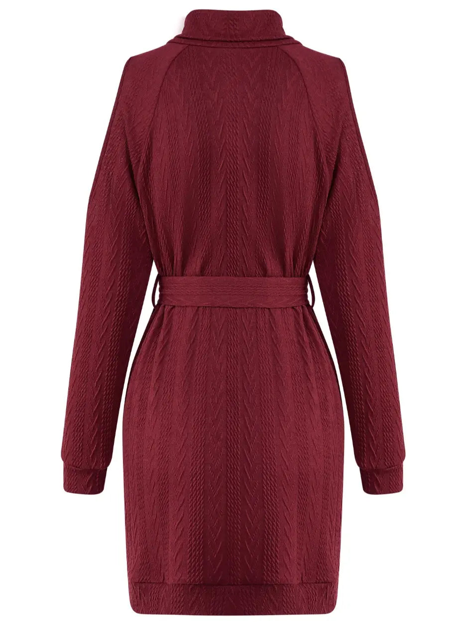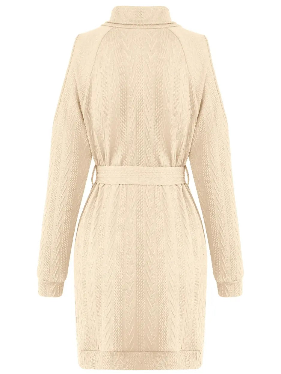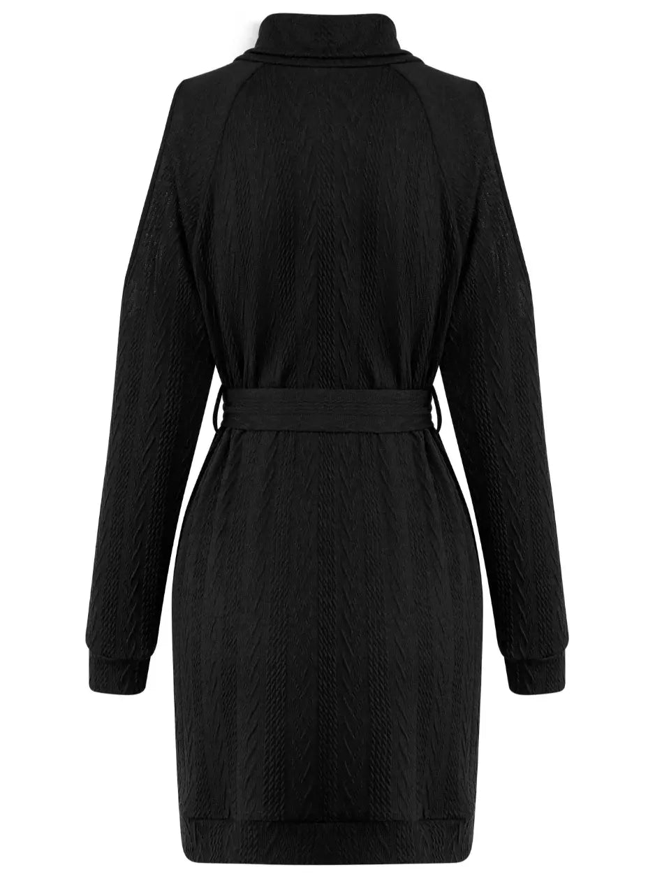 Dieses stilvolle Kleid mit Cut-Out-Ärmeln und Stehkragen bietet einen modernen Look. Der Taillengürtel sorgt für eine feminine Silhouette und betont deine Figur. Perfekt für modische Anlässe und trendige Outfits.