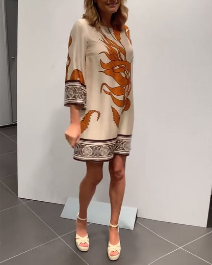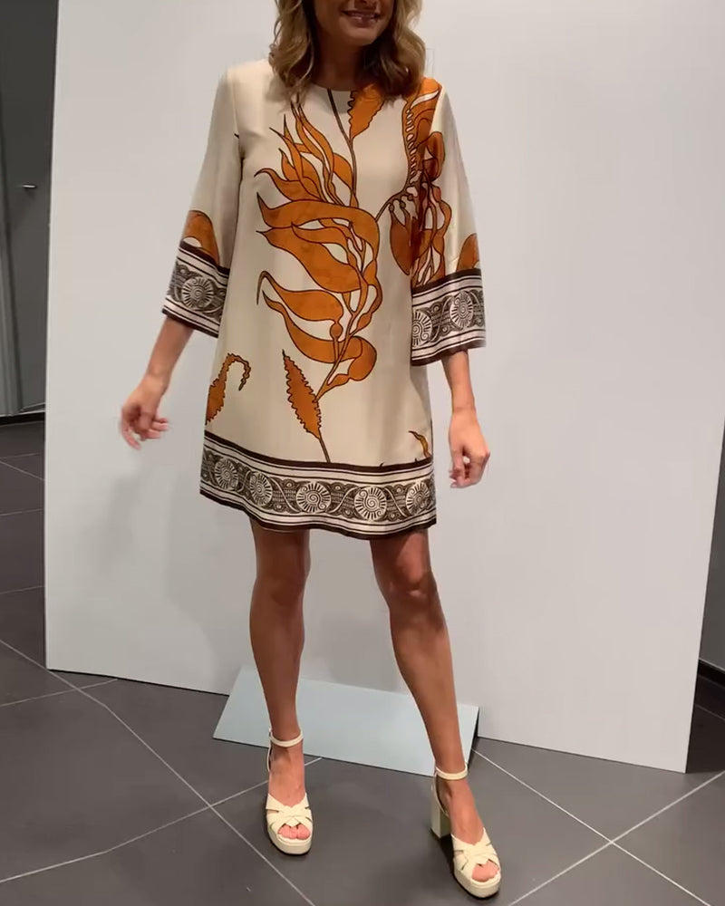 Kleid mit rundhalsausschnitt und vintage-print
