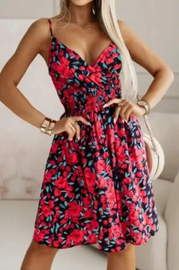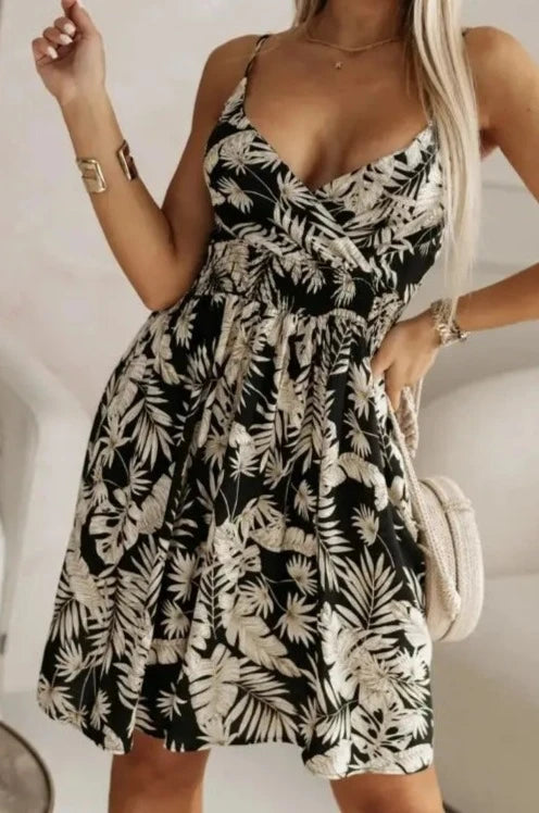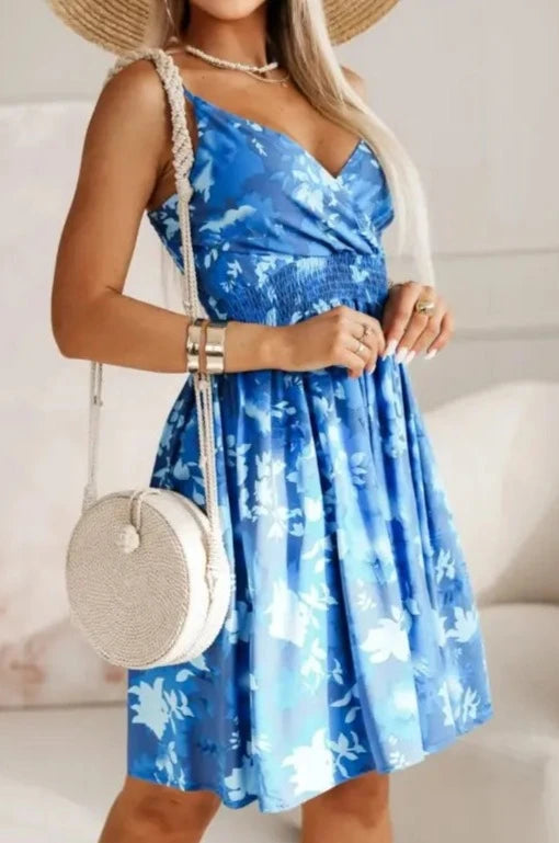Dieses bezaubernde Sommerkleid mit süßem Muster und Spaghettiträgern ist perfekt für warme Tage. Der tiefe Ausschnitt und die geraffte Taille betonen deine Figur und sorgen für einen femininen Look. Ideal für Strandtage, Gartenpartys oder einen entspannten Stadtbummel.