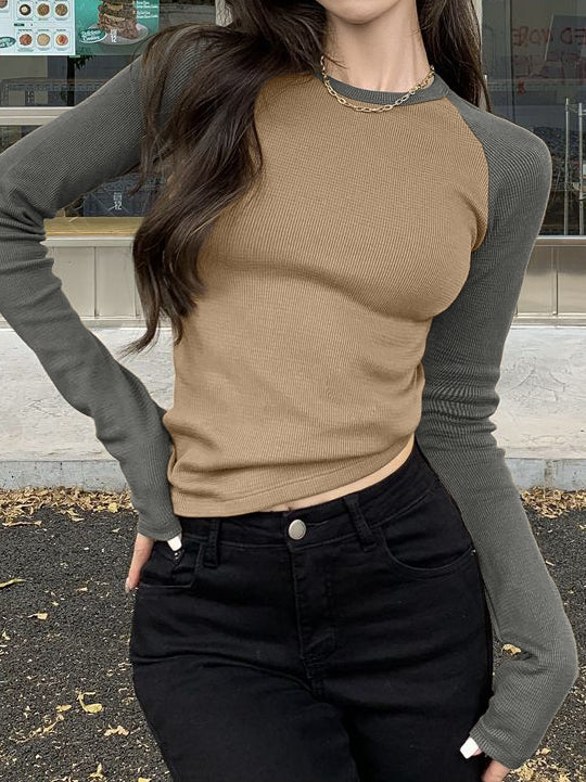 Kontrastfarbenes Vintage Raglanärmel Rip Top