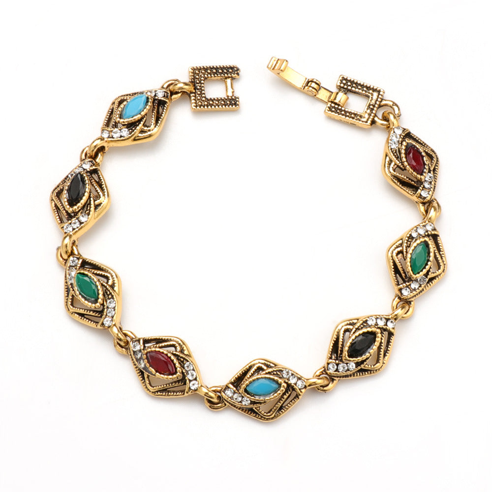 Dieses exquisite Armband ist ein wahrhaft einzigartiges Accessoire, das aus Kristallen, Legierung und Harz gefertigt wurde. Mit einer Länge von 18,5 cm ist es passend für die meisten Handgelenksgrößen und verleiht dem Träger oder der Trägerin einen Hauch von Stil und Farbenpracht. Die funkelnden Kristalle und lebendigen Farben geben dem Armband einen Glanz und eine Lebendigkeit, die jeden Blick auf sich ziehen werden. Durch den Vintage-Stil wird das Armband zu einem perfekten Ergänzungsstück, um Ihren Retro-Look zu vervollständigen. Erleben Sie eine Explosion an Farbe und Raffinesse an Ihrem Handgelenk mit diesem Armband.