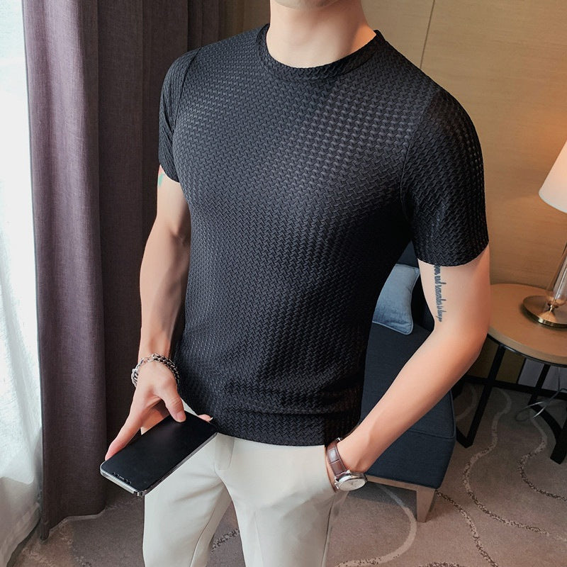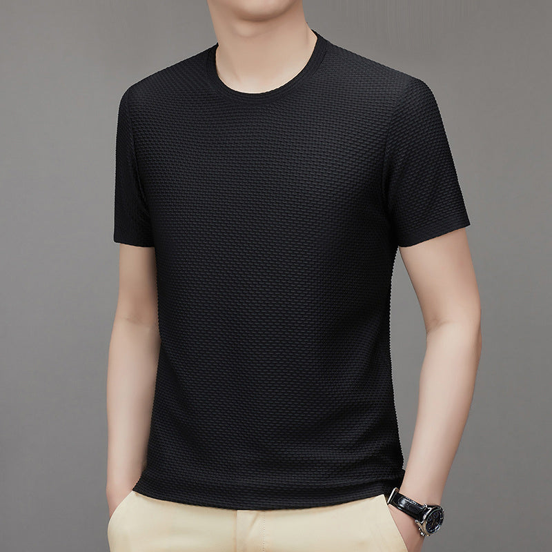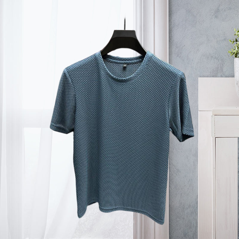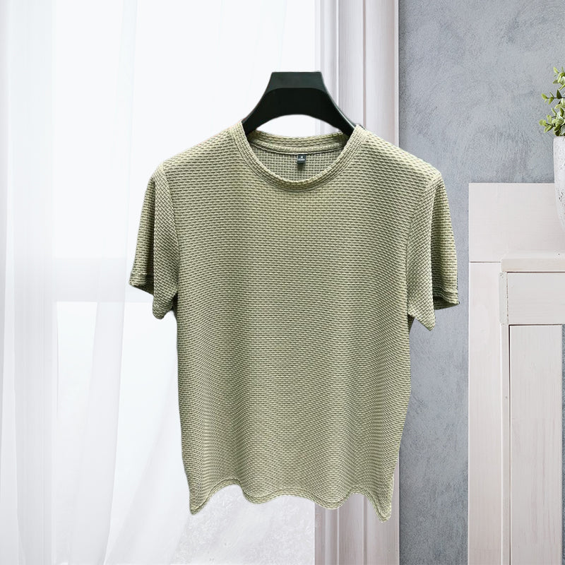 Unsere Kurzarm-T-Shirts aus Mesh-Eisseide für Herren sind sowohl auf Stil als auch auf Komfort ausgelegt. Das klassische Kurzarmdesign und der taillierte Schnitt sorgen beim Tragen für einen eleganten, selbstbewussten Stil. Eine Vielzahl von Farboptionen ermöglicht eine freie Abstimmung nach persönlichen Vorlieben und Anlässen.