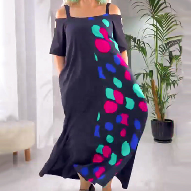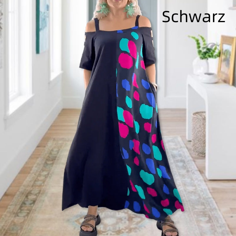 Kurzärmeliges bedrucktes lockeres Kleid mit kalter Schulter für Damen