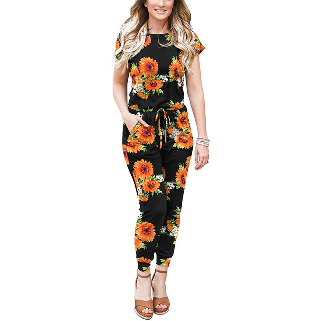 Kurzarmliger Bedruckter Stretch Jumpsuit Fur Damen