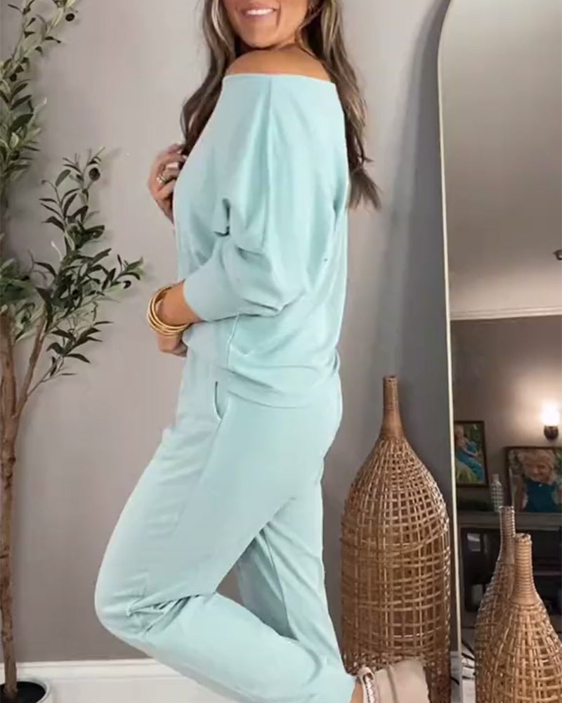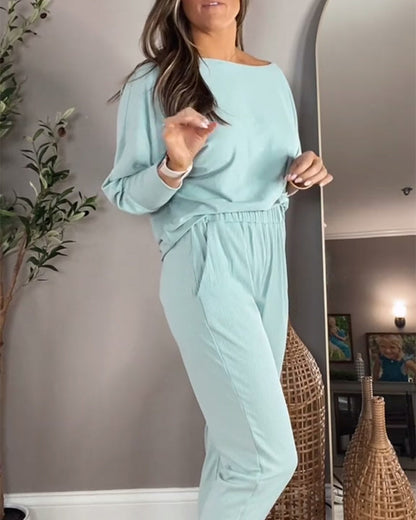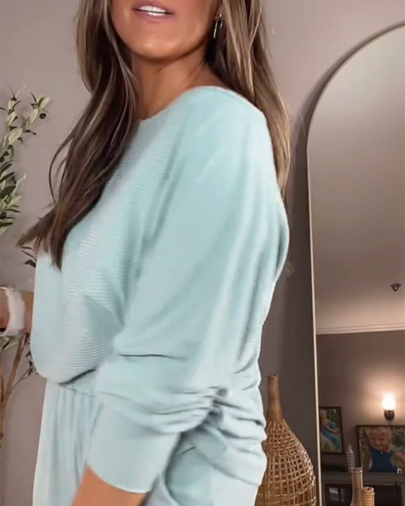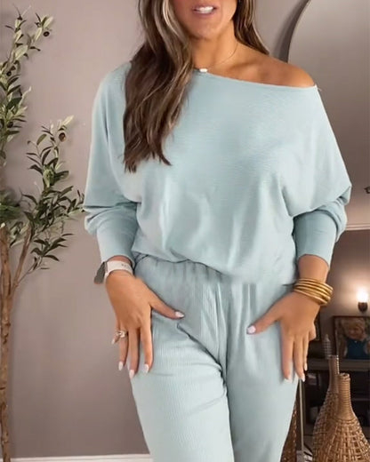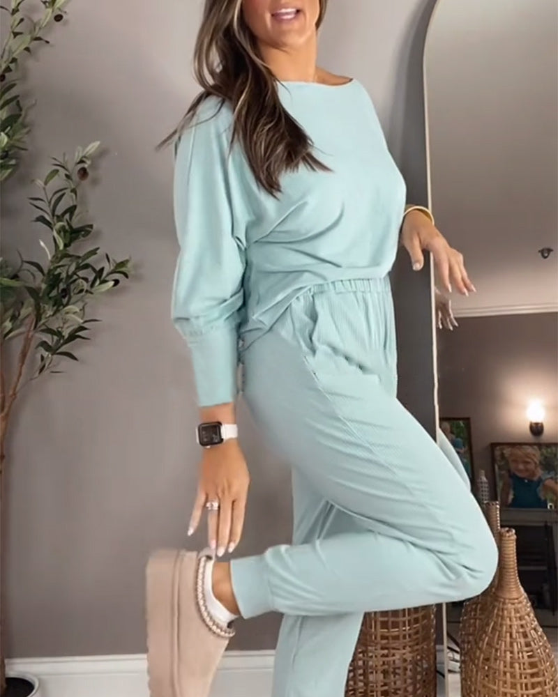 Langärmliger, lässiger zweiteiliger Anzug mit Streifenmuster