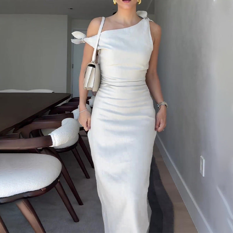 Das einseitige Schulterdesign verleiht diesem Kleid eine moderne Silhouette und unterstreicht die weibliche Form mit einer natürlichen Eleganz.