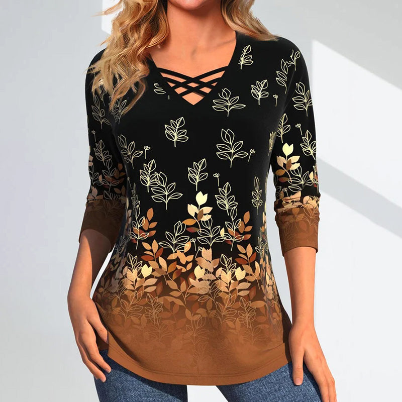 Lässige Bluse Mit Blattdruck