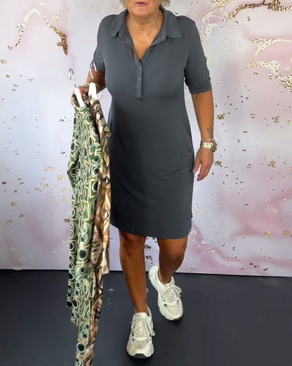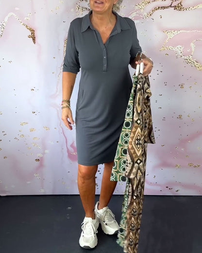 Lässiges Kleid mit Knopfrevers und einfarbiger Passform