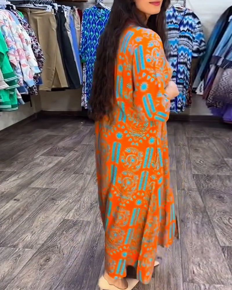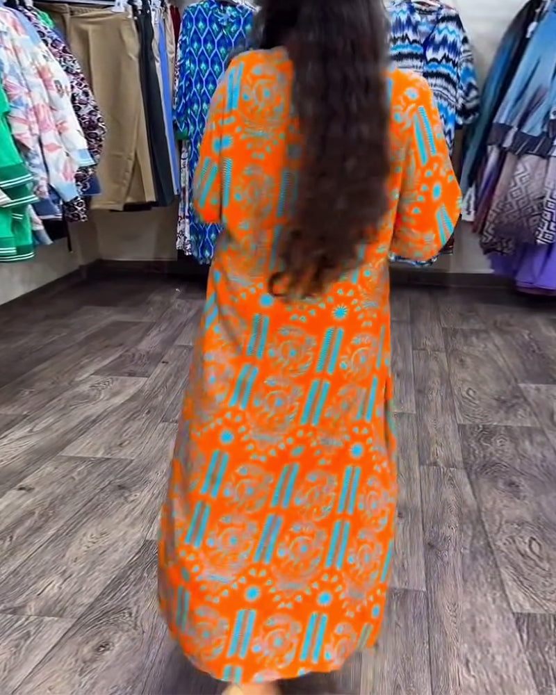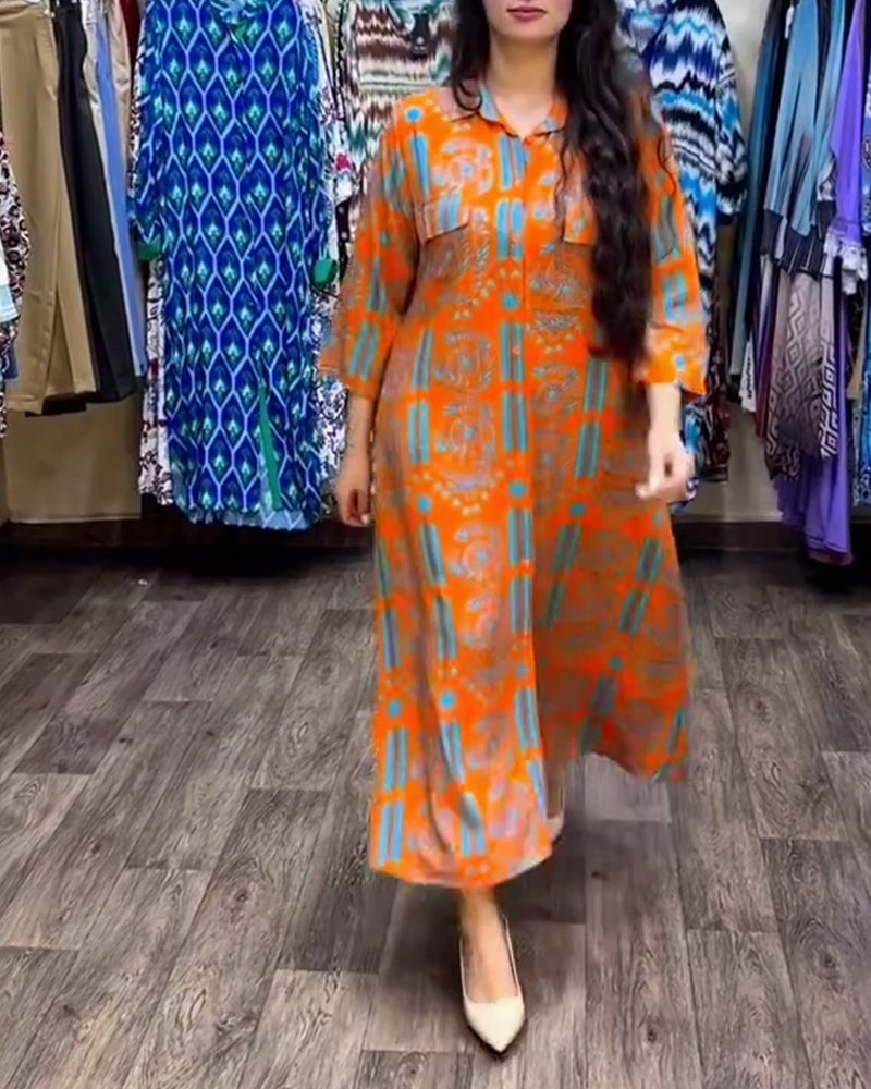 Lässiges Kleid mit Revers und Retro-Kontrastdruck