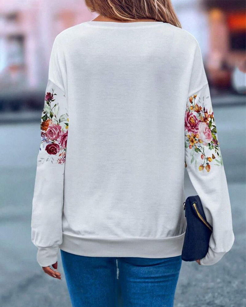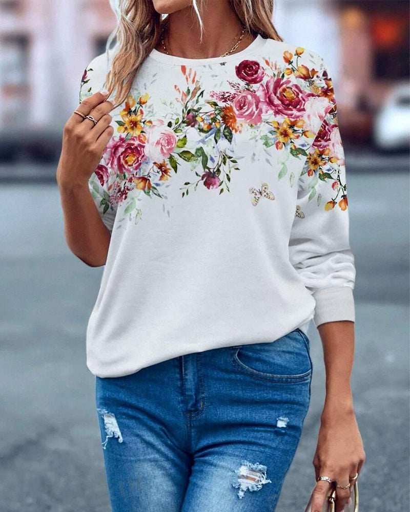 Lässiges sweatshirt mit rundhalsausschnitt und blumendruck
