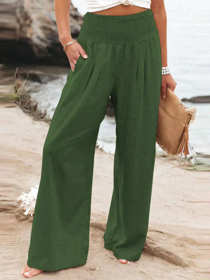 Diese Hose für Frauen hat ein attraktives und elegantes Design mit geradem Bein und lockerem Sitz. Die hohe Taille sorgt für einen schönen Look und der Gummizug rundum bietet mehr Komfort. Die Farben sorgen für einen zeitlosen Look und das Zwei-Taschen-Design macht diese Hose sowohl praktisch als auch stylish.