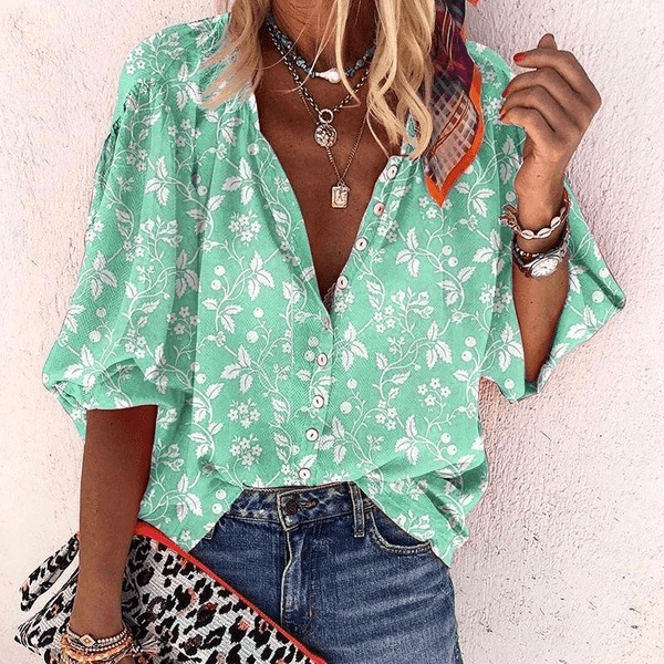 Die Livaa Print Bluse ist eine weiche Bluse für den Sommer. Die Bluse hat Schultern, ist schlicht, lässig und eine neue Modebluse für Frauen.