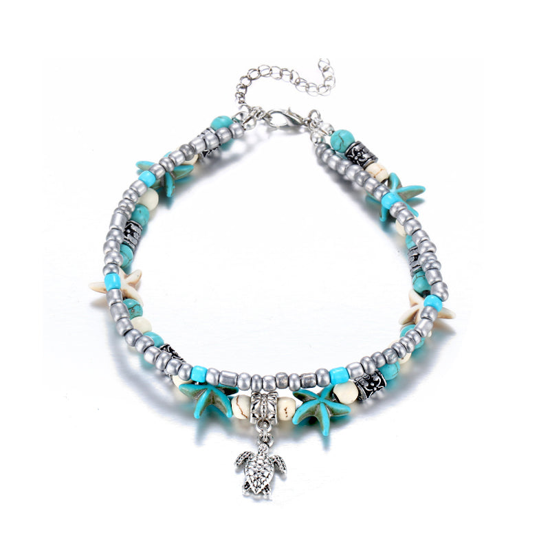- 🌊Einzigartiges Design: Es ist ein Modedesign im Bohème-Stil. Die türkisfarbenen Perlen des Strandfußkettchens und die niedliche Schildkrötenform zeigen den gemächlichen Ozean- und Strandstil. Bequem und leicht.