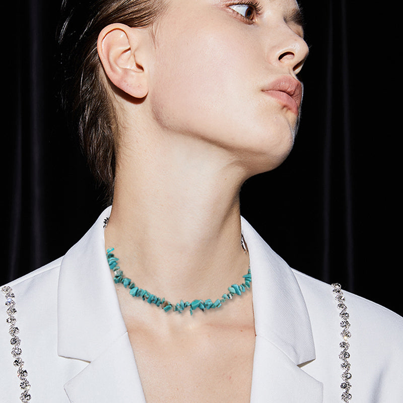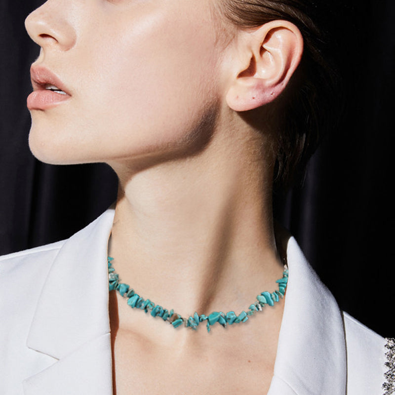 - 🎗Diese türkisfarbene Halskette sorgt für einen Hauch von Pizza! Die minimalistische Bar-Choker-Halskette besteht aus rohem Naturtürkis.